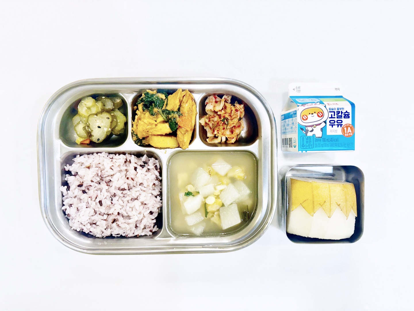 2025.12.16 (화) 중식식단 - 오전간식:우유 / 흑미밥,북어뭇국,닭갈비,하얀오이지무침, 배추김치 (후)배 작성자 : 관리자 25-12-16 Next 2025.12.17 (수) 중식식단 - 오전간식:우유 / 두부까스덮밥, 달걀양팟국, 가지나물,배추김치 (후)치즈 Prev 2025.12.15 (월) 중식식단 - 오전간식:우유 / 현미밥,유부된장국,쇠고기청경채조림,시래기나물, 배추김치(후)파인애플 목록
