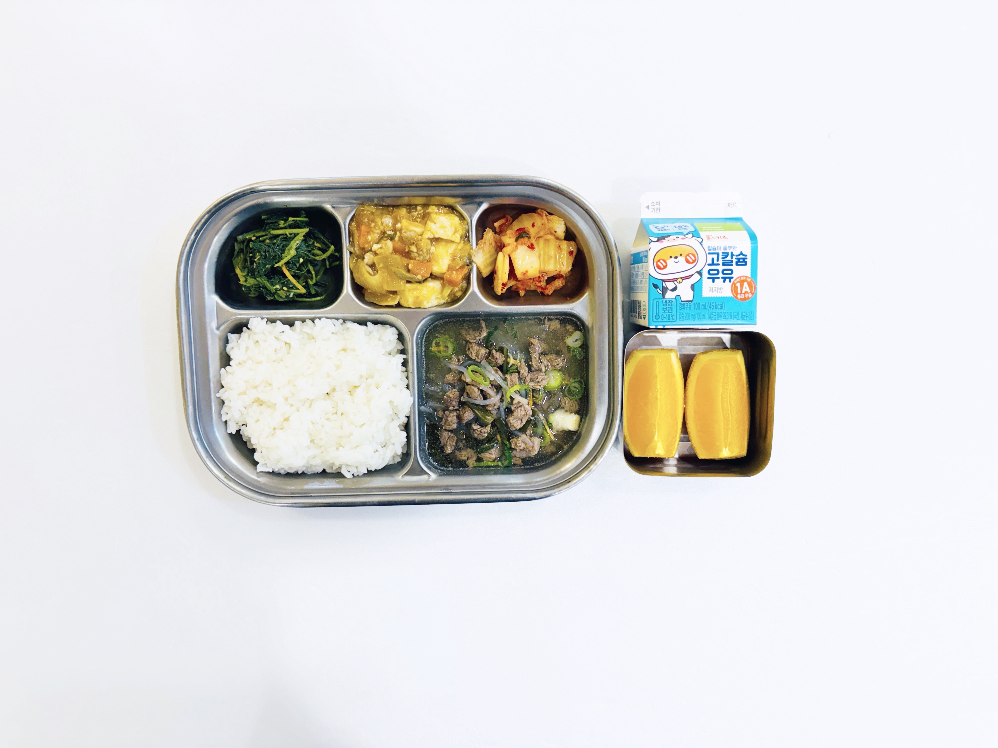 2026.3.13 (금) 중식식단 - 아침간식: 우유 / 백미밥,소고기당면국,마파두부,취나물들기름무침,배추김치(후)오렌지 작성자 : 관리자 26-03-13 Prev 2026.3.12 (목) 중식식단 - 아침간식: 우유 / 차조밥,고사리들깨탕,달걀무조림,청포묵김무침,배추김치,(후)떠먹는 요구르트,견과류 목록
