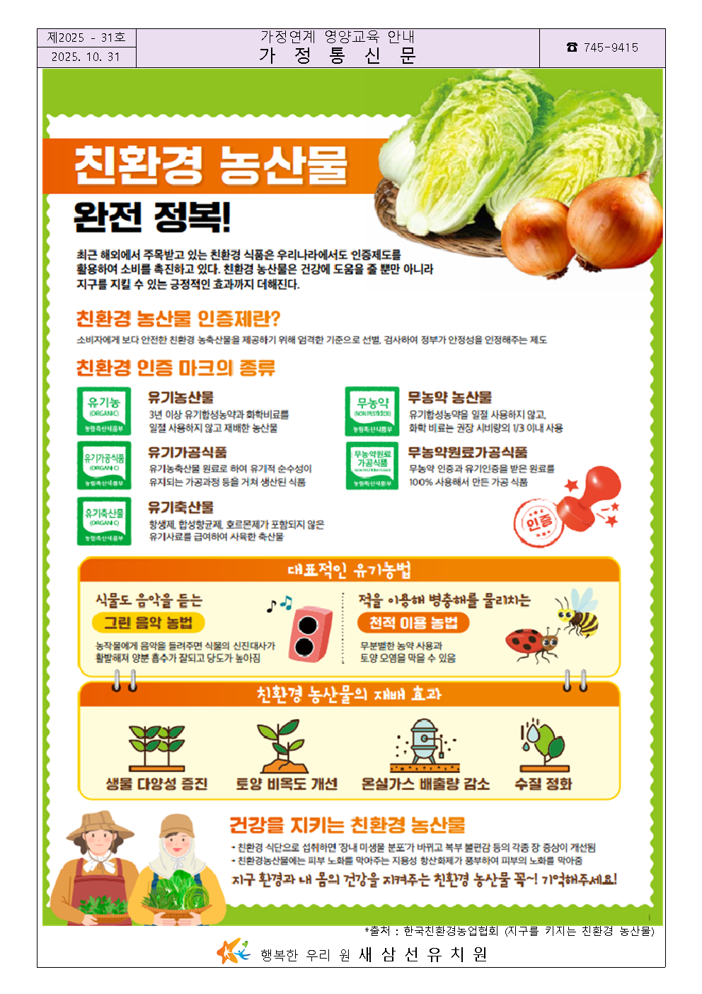 소식란 새삼선갤러리 행사달력 급식 운영위원회 입학안내 급식알리미 10월 가정연계 - 영양교육 (친환경 농산물 안전 정복!) 작성자 : 관리자 25-10-31 Next 2025학년도 11월 식단표 Prev 2025학년도 10월 식단표 목록