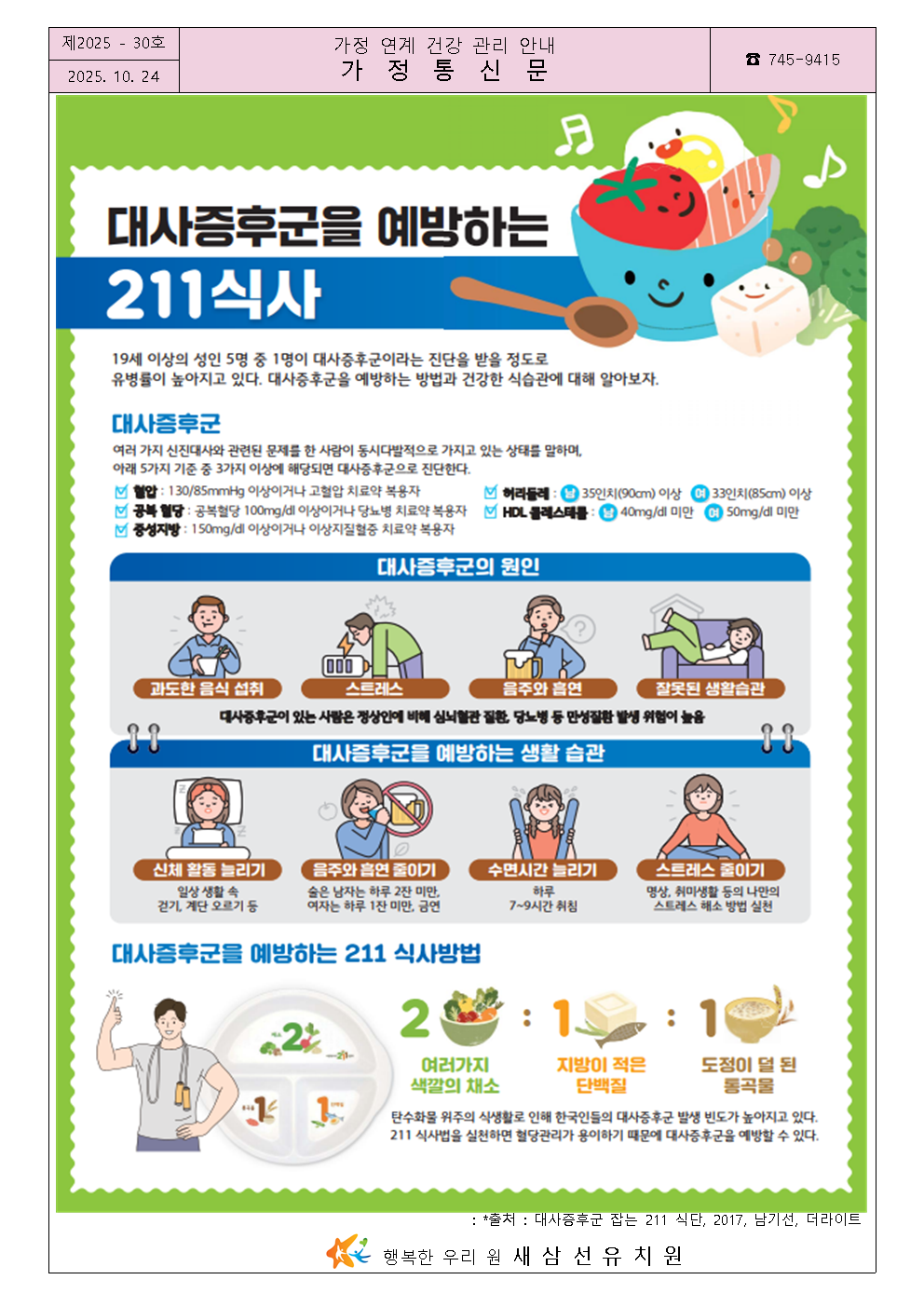 소식란 새삼선갤러리 행사달력 급식 운영위원회 입학안내 소식란 10월 건강관리통신문 - 대사증후군을 예방하는 211식사 작성자 : 관리자 25-10-24 댓글 댓글등록 Next 급식소통창구^^ Prev 바깥놀이터 2차 소독을 완료했어요~ 목록