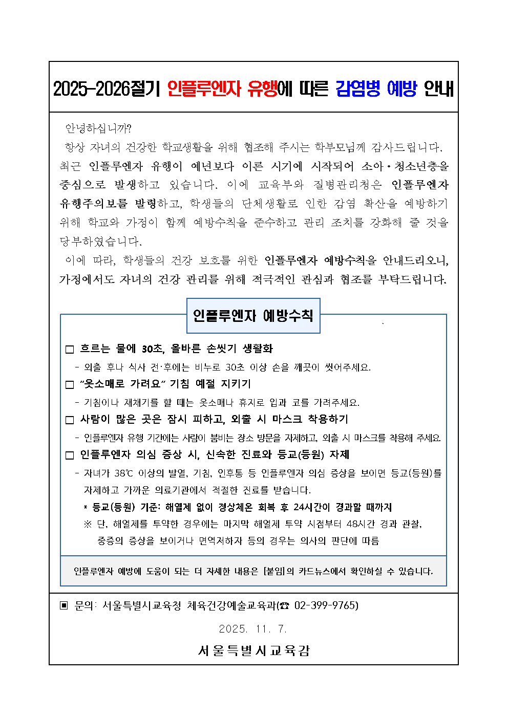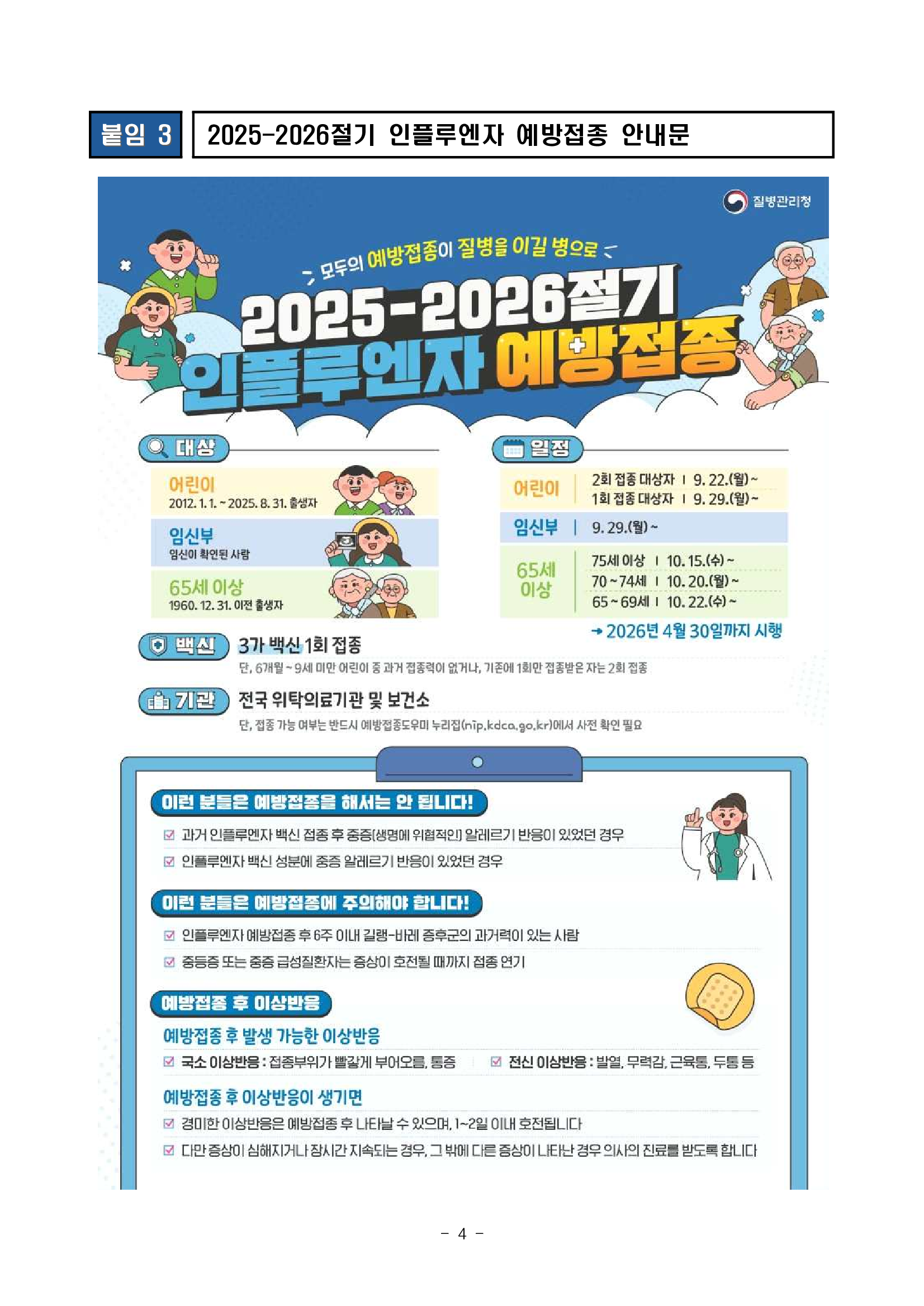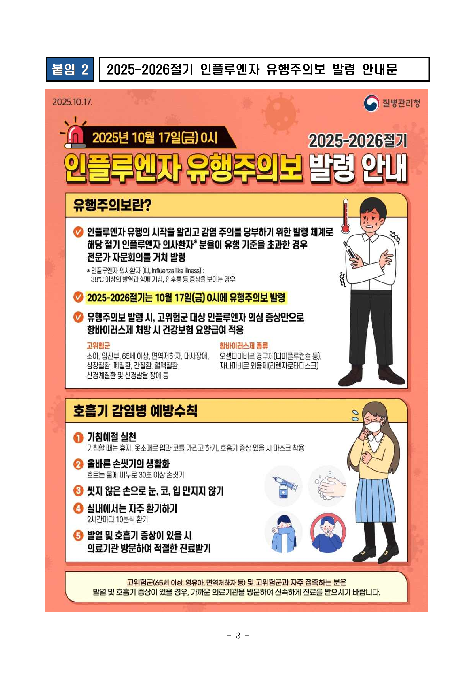 2025-2026절기 인플루엔자 유행에 따른 감염병 예방 안내