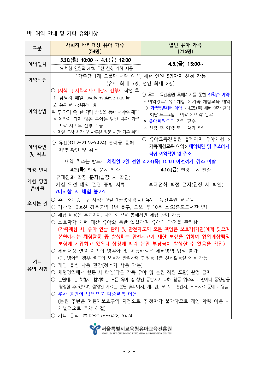서울특별시교육청유아교육진흥원에서는 어린이날을 기념하기 위하여 『2026년 어린이날 가족특별체험』을 운영합니다. 자녀들과 함께 다양한 놀이를 경험하며 행복한 추억을 쌓는 시간이 되시길 바라며, 참여를 희망하는 가정에서는 유아교육진흥원 홈페이지(http://seoul-i.sen.go.kr/) 에서 직접 개별 신청하여 주시기 바랍니다.