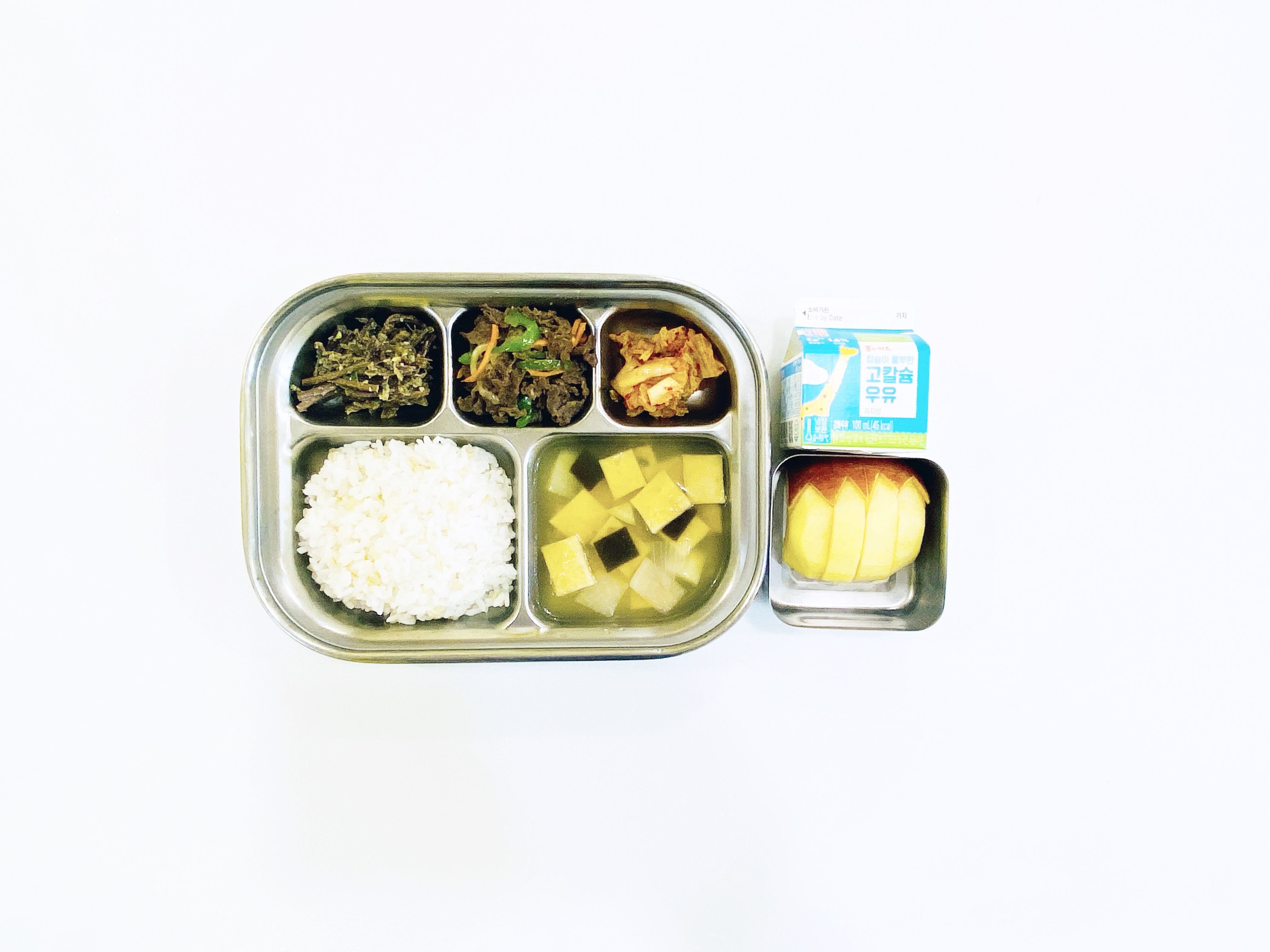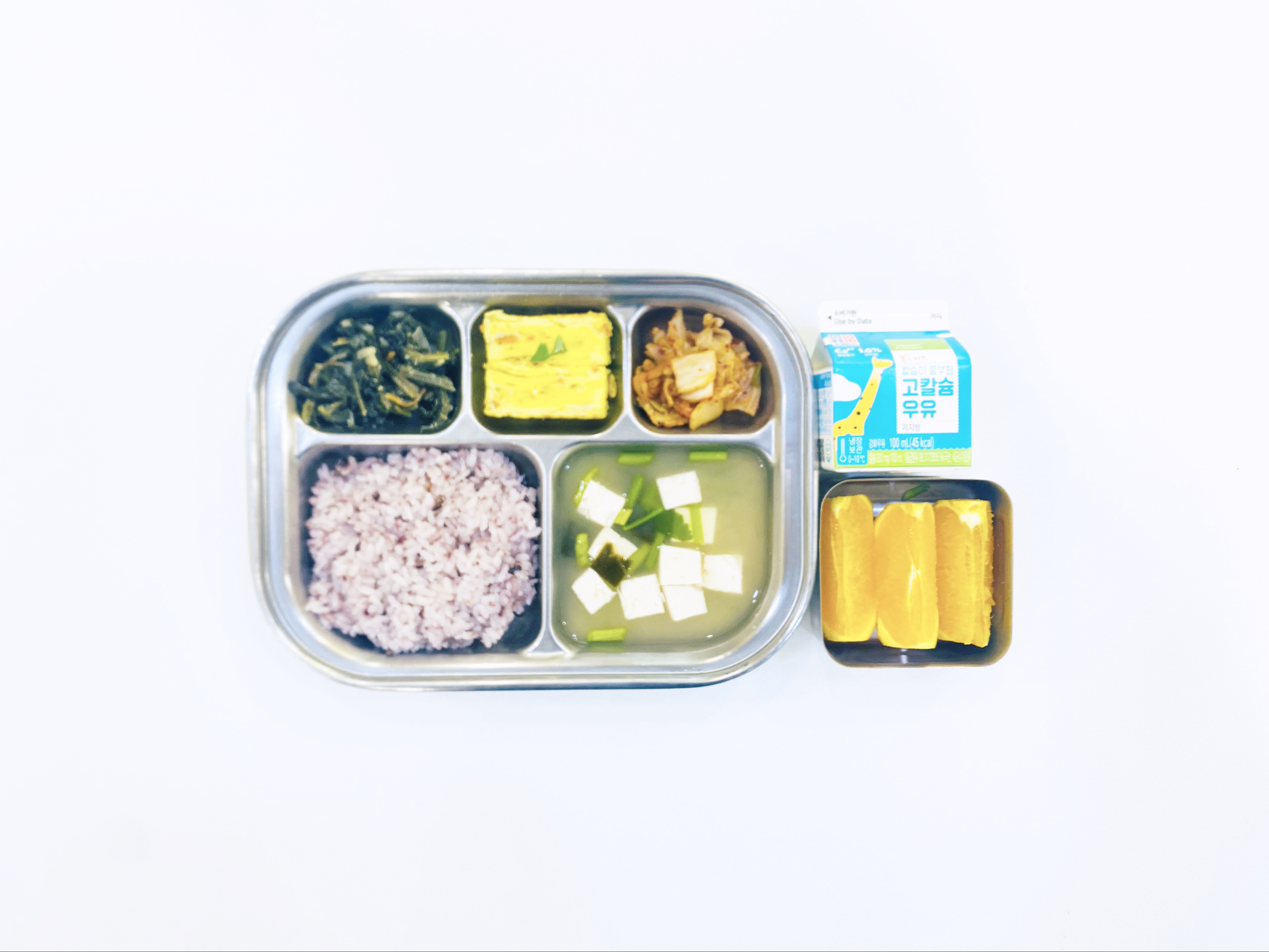 2025.11.14(금) 중식식단 - 오전간식:우유 / 흑미밥,두부미나리국,달걀말이,곤드레나물,배추김치(후)오렌지