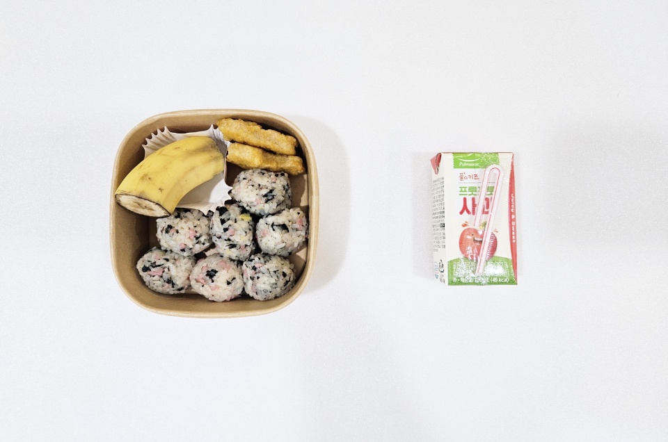 2025.11.17(월) 중식식단(견학식단) - 햄채소주먹밥,치킨너겟,사과쥬스 (후)바나나