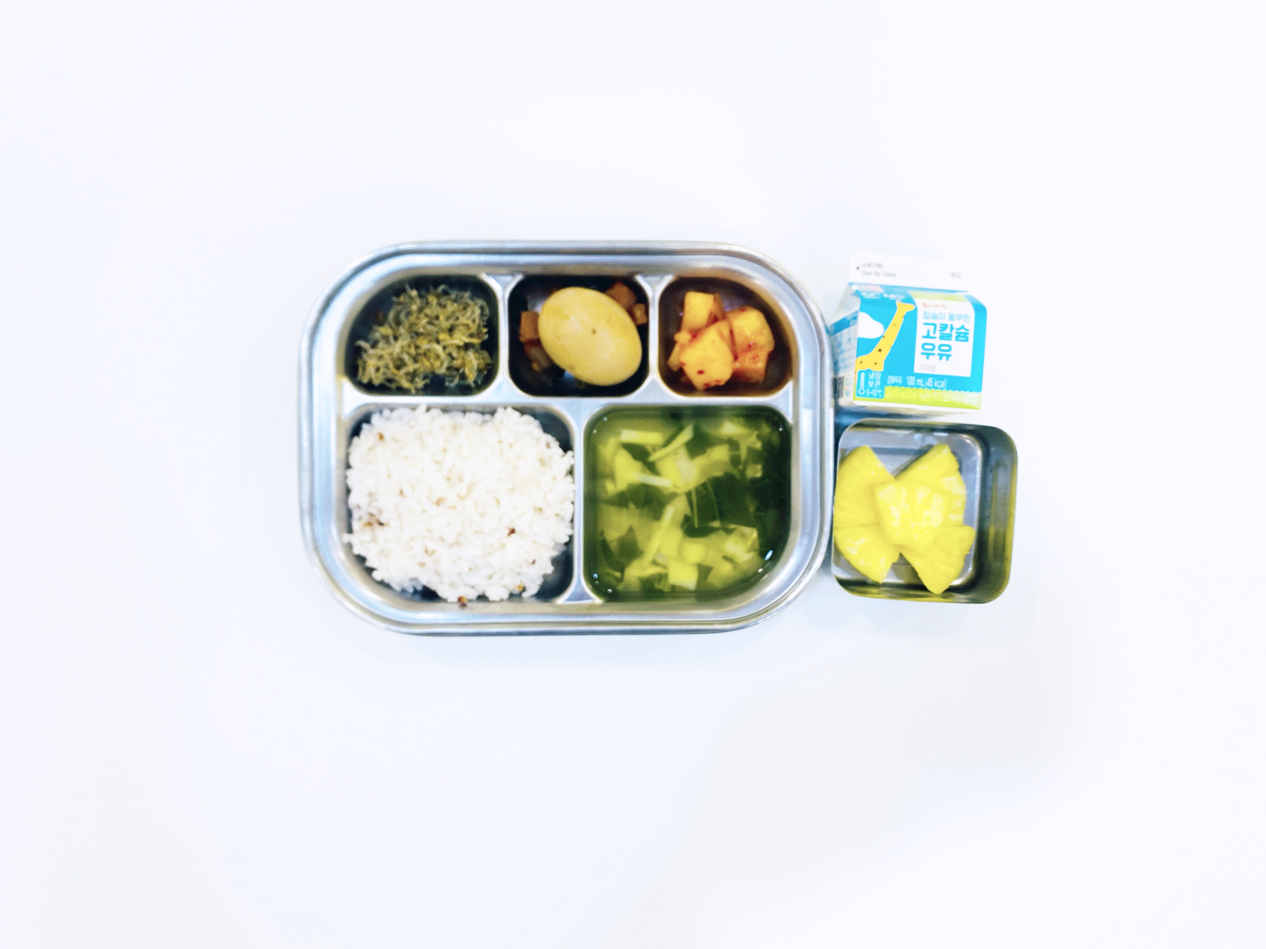 2025.11. 3(월) 중식식단 - 오전간식:우유 / 수수밥,청경채감잣국,달걀장조림,잔멸치볶음,깍두기 (후)파인애플