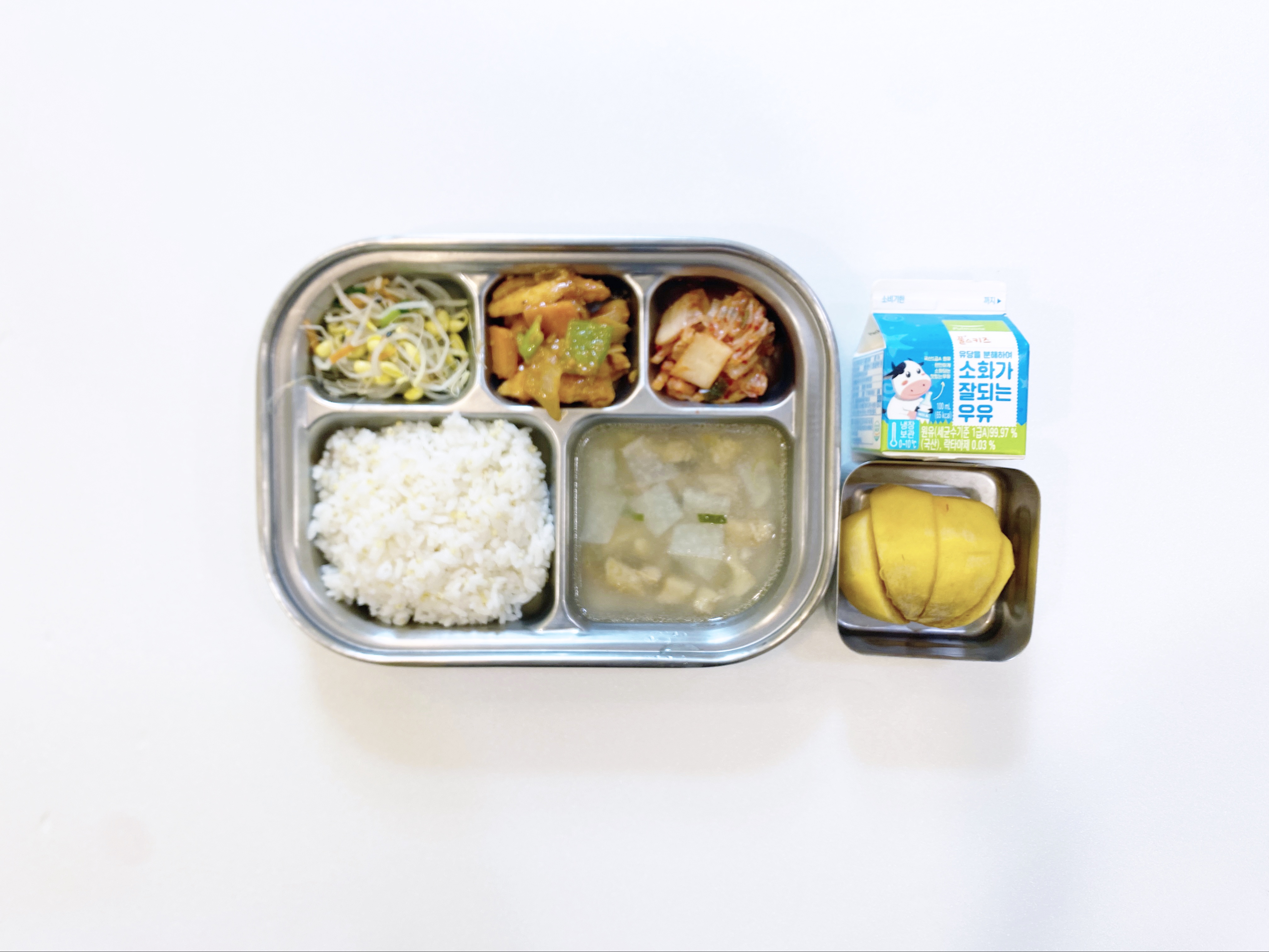 2025.10.27(월) 중식식단 - 오전간식:우유 / 기장밥,북엇국,닭갈비,콩나물무침,배추김치 (후)단감