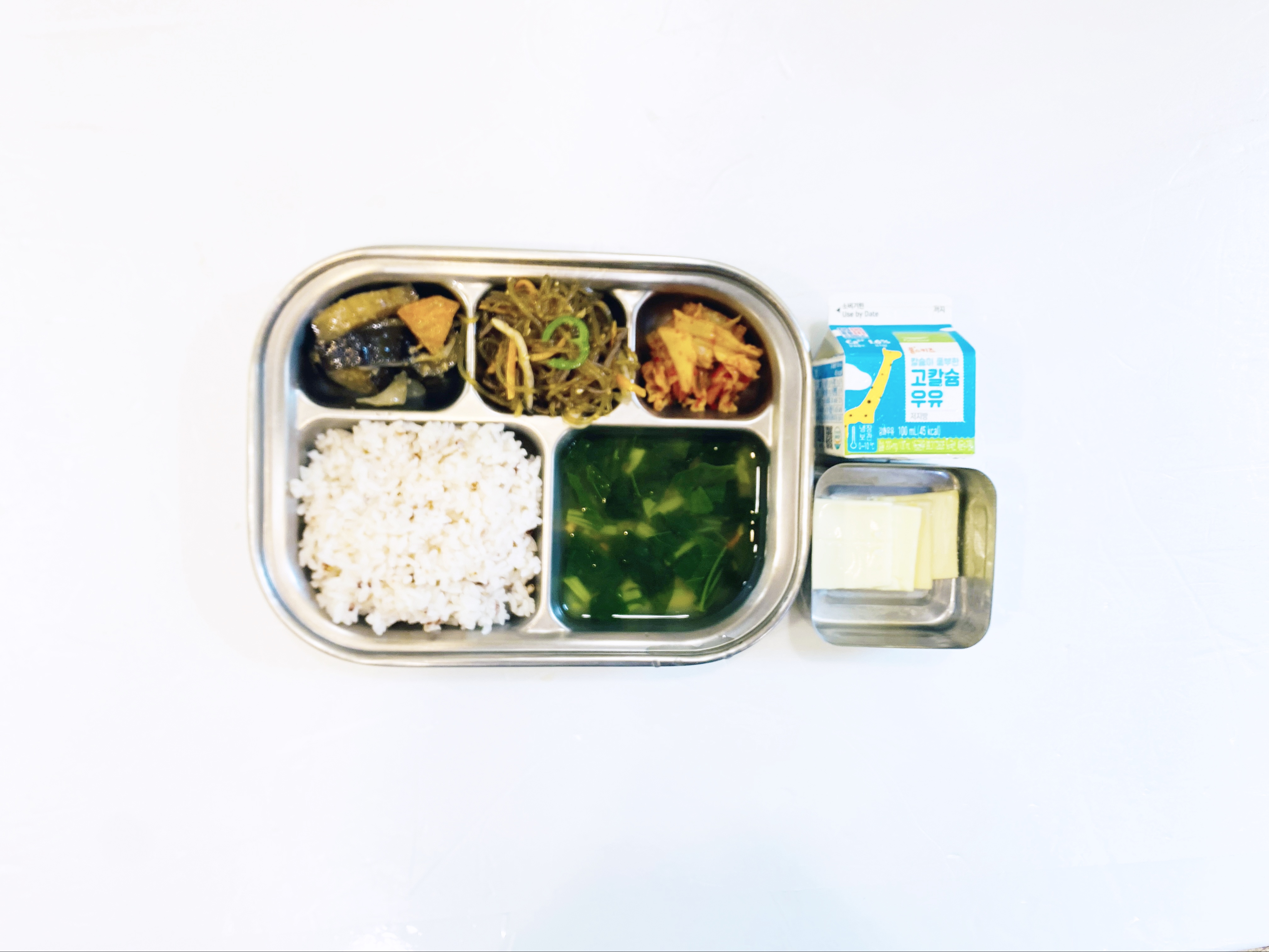 2025.9.30(화) 중식식단 - 오전간식:우유 / 수수밥,아욱된장국,쇠고기잡채,가지나물,배추김치(후)치즈