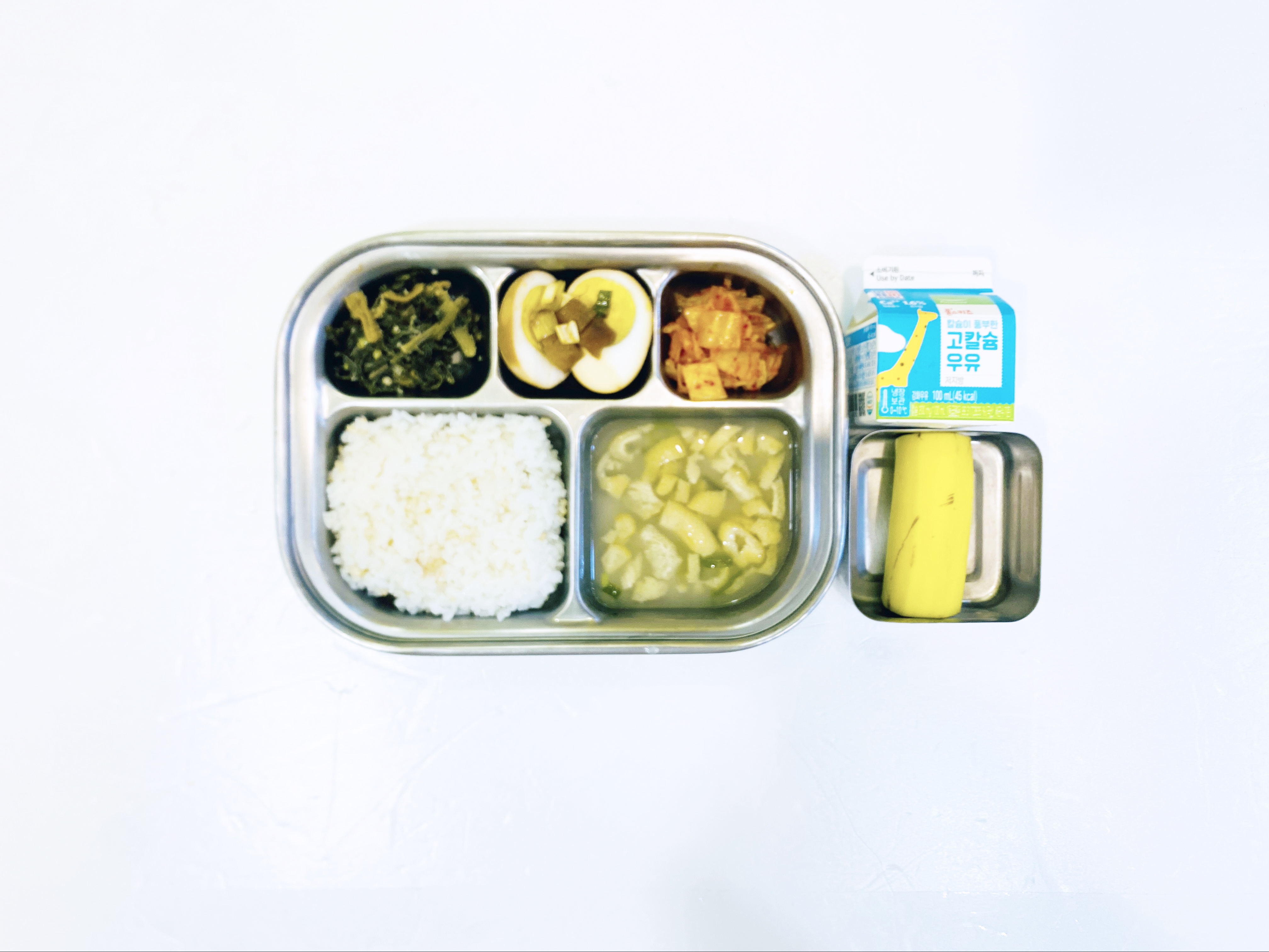 2025.10.10(금) 중식식단 - 오전간식:우유 / 현미밥,유부된장국,달걀장조림,시래기나물,배추김치(후)바나나