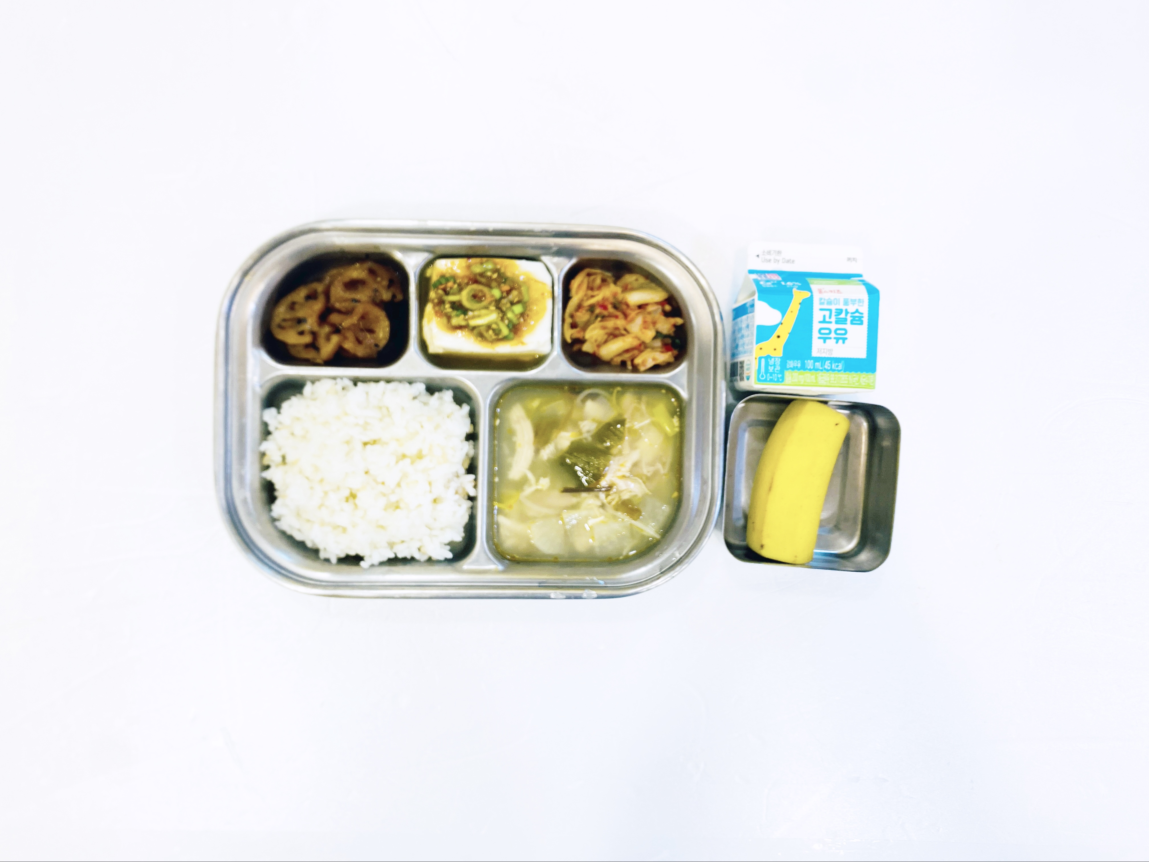2025.9.19(금) 중식식단 - 오전간식:우유 / 현미밥,닭개장,온두부&양념장,연근조림,배추김치(후)바나나