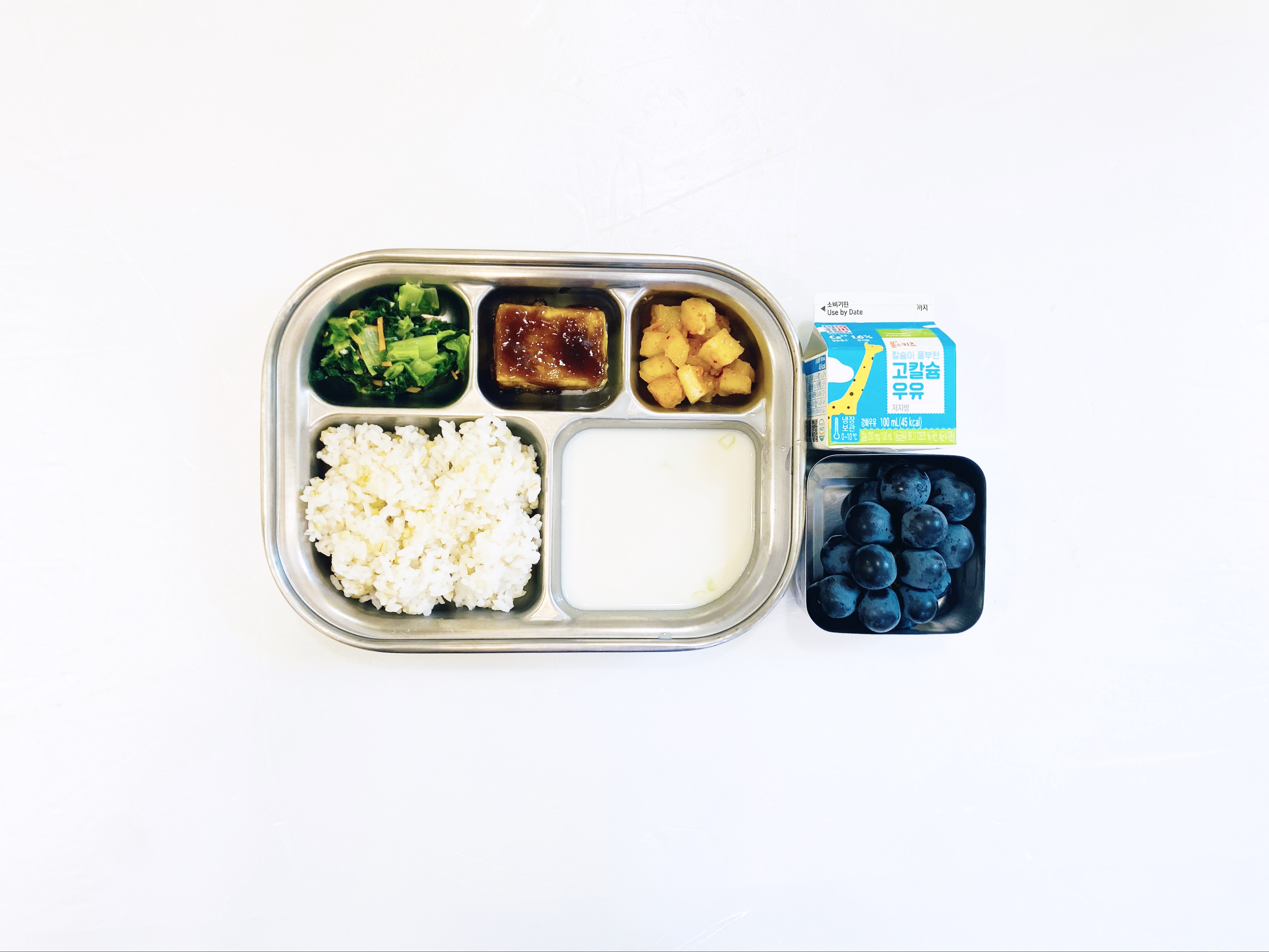 2025.9.23(화) 중식식단 - 오전간식:우유 / 보리밥,사골팟국,두부굴소스조림,얼갈이무침,깍두기(후)포도