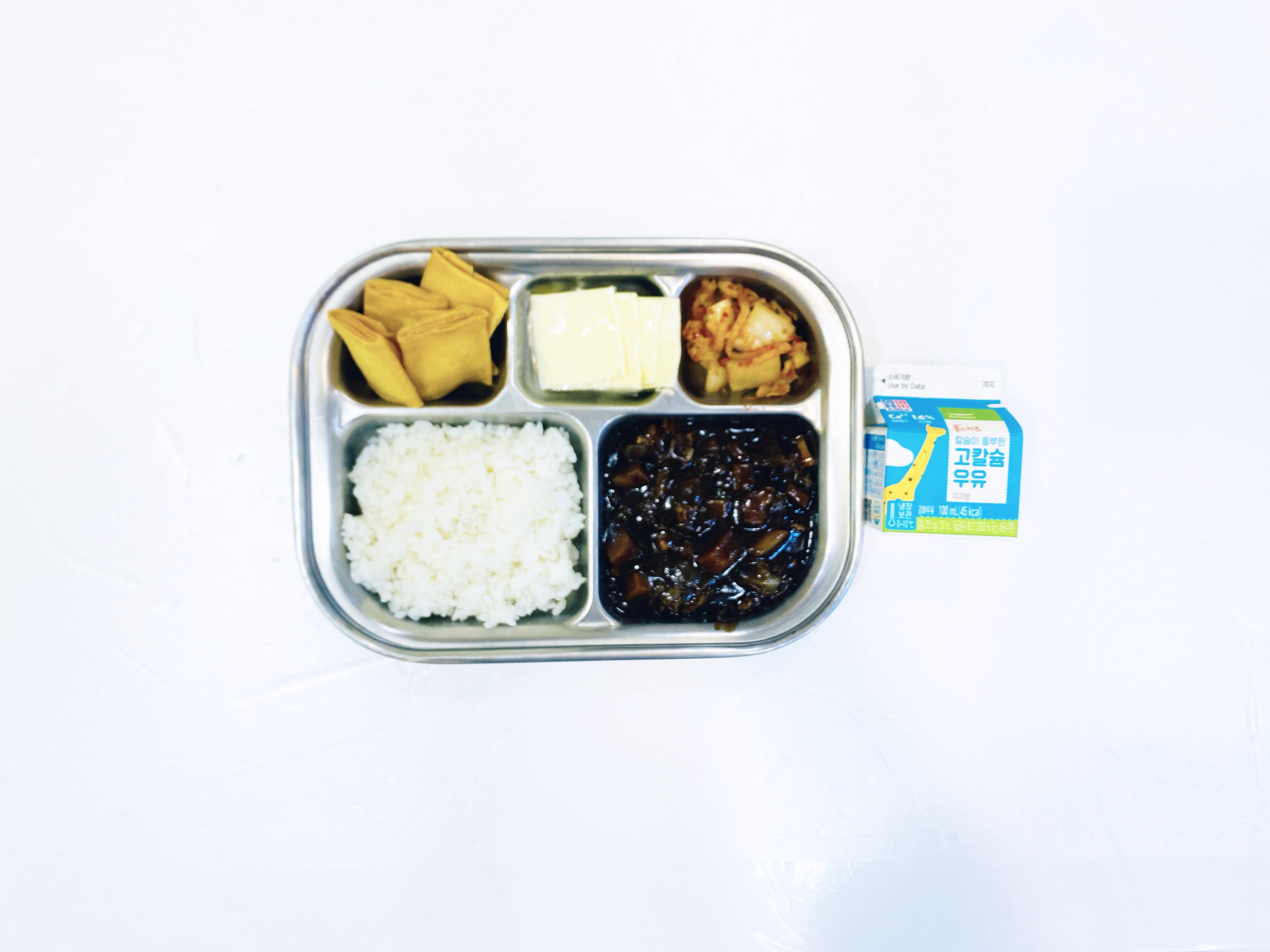 2025.9.24(수) 중식식단 - 오전간식:우유 / 닭살짜장밥, 춘권튀김,배추김치(후)치즈