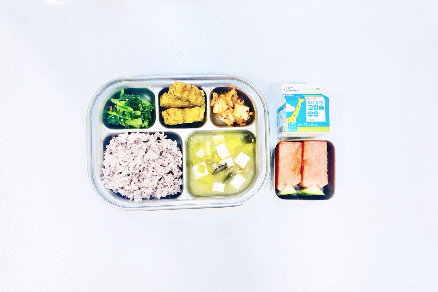 2025.7.25(금) 중식식단 - 오전간식:우유 / 흑미밥,두부된장국,임연수구이,열무나물,배추김치 (후)수박