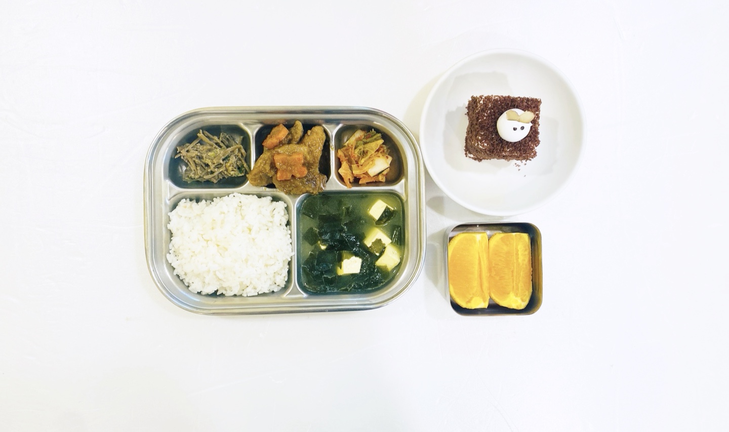 2025.5.29(목) 중식식단 (생일식단) 백미밥,두부미역국,돼지갈비찜,고구마순나물,배추김치(후)오렌지,케이크