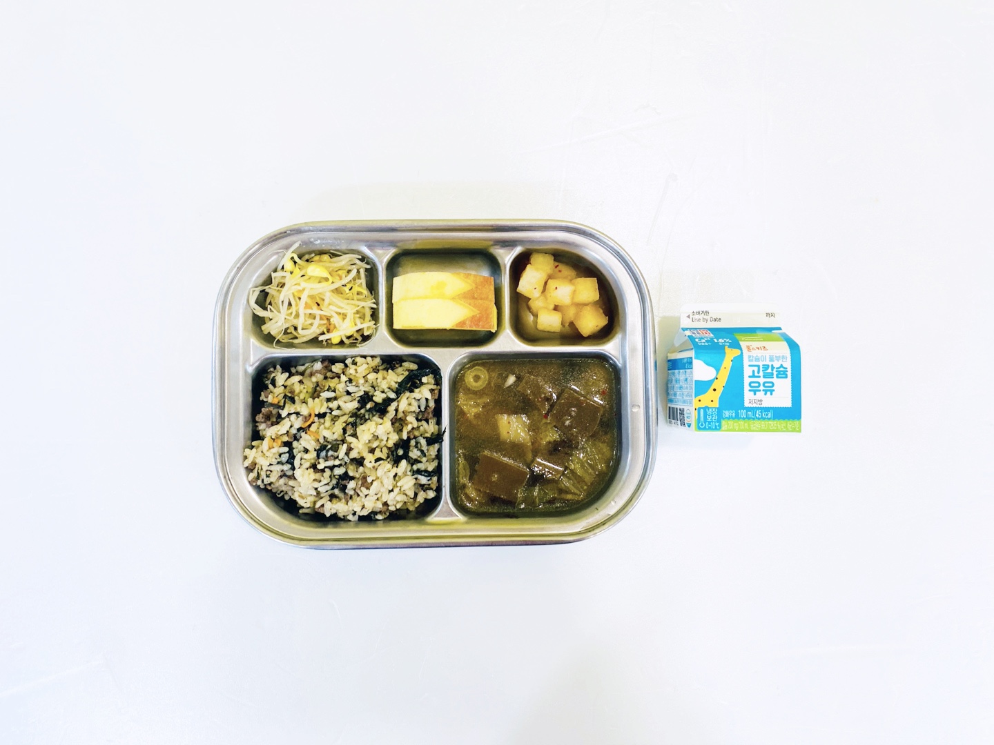2025.4.30(수) 중식식단 - 오전간식:우유 /쇠고기곤드래밥&양념장,온도토리묵국,콩나물무침,깍두기 (후)사과