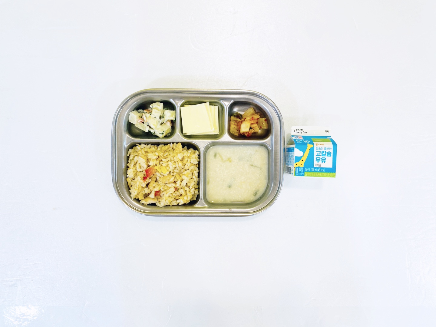 2025.5.7(수) 중식식단 - 오전간식:우유 /닭살파인애플볶음밥,콩비지국,깻잎감자샐러드,배추김치 (후)치즈