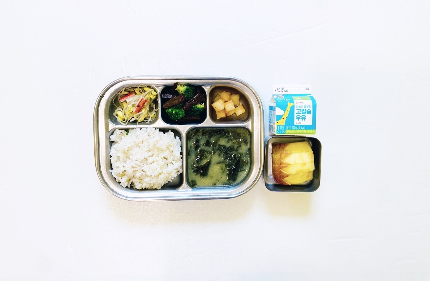 2025.5.9(금) 중식식단 - 오전간식:우유 /현미밥,들깨미역국,쇠고기브로콜리조림, 맛살콩나물무침,깍두기 (후)사과
