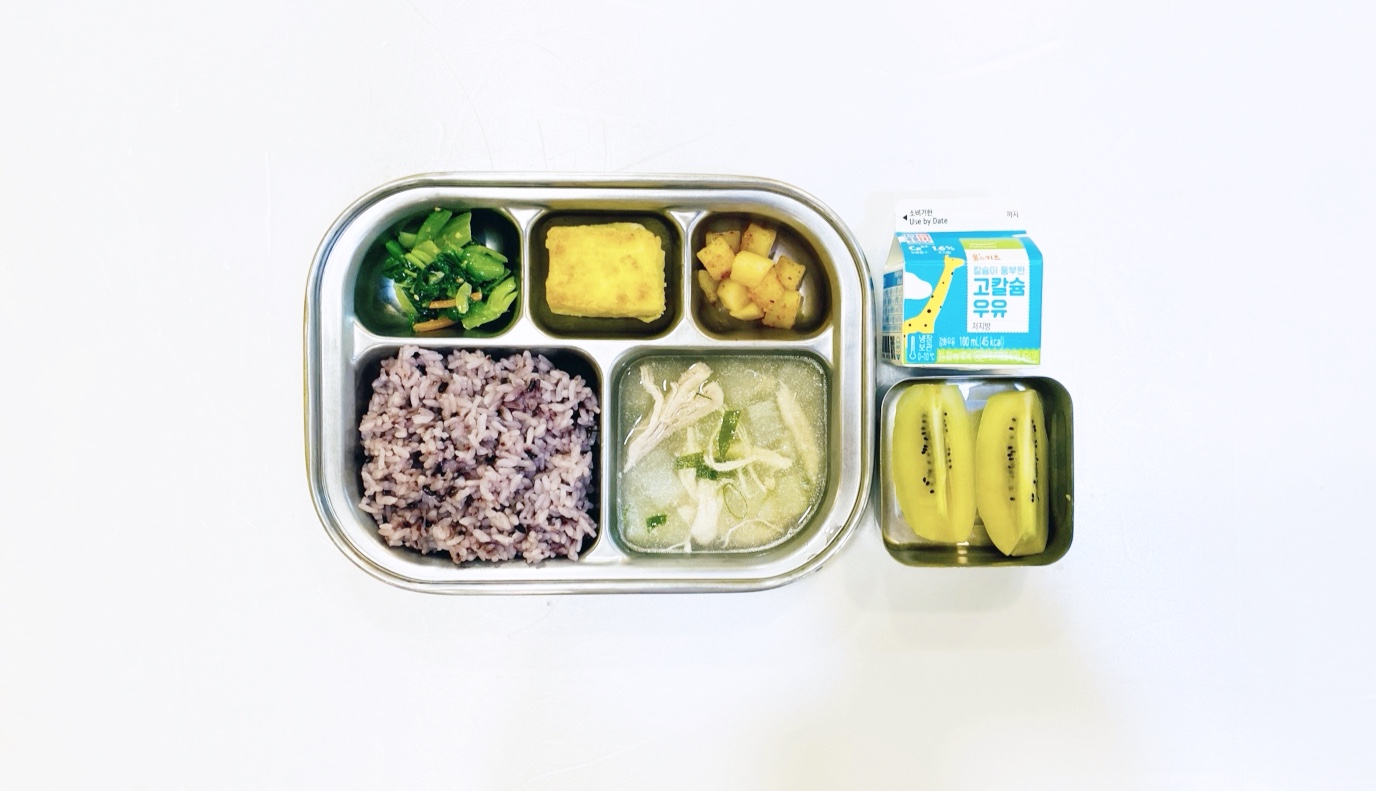 2025.5.13(화) 중식식단 - 오전간식:우유 /흑미밥,닭곰탕,두부찹쌀부침,청경채무침,깍두기 (후)키위