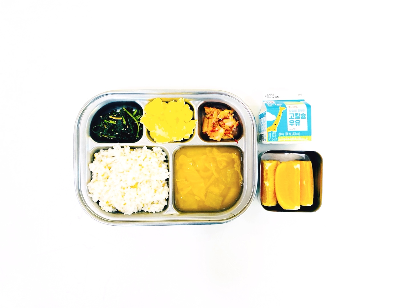 2025.3.14(금) 중식식단 - 기장밥,청국장국,스크램블에그,취나물무침,배추김치 (후)오렌지,우유