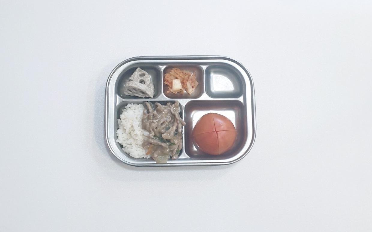 2025.2.26(수) 중식식단 - 돼지고기가지덮밥,연근샐러드,배추김치 (후)토마토