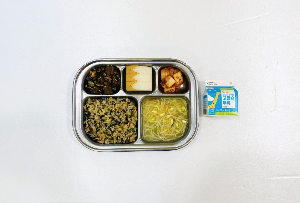 2025.3.5(수) 중식식단 - 쇠고기버섯밥&양념장,콩나물국,도토리묵무침, 배추김치 (후)배,우유