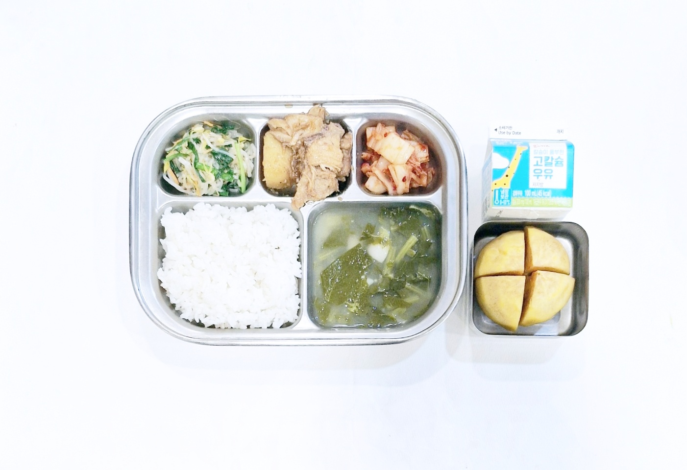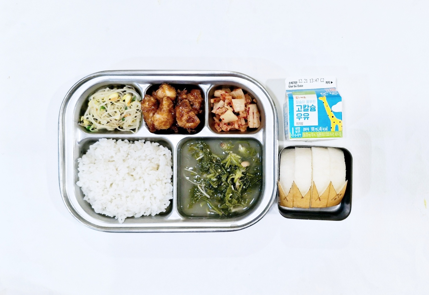 2024.12.19(목) 중식식단 - 백미밥,열무된장국,간장찜닭,숙주나물,배추김치 (후)단감,우유