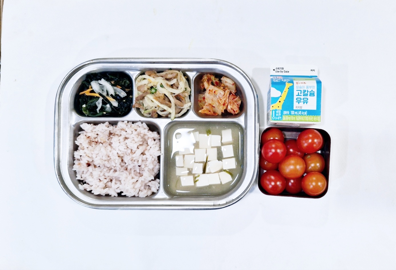 2024.12.16(월) 중식식단 - 수수밥,두부탕국,돼지고기무들깨볶음,미역초무침,배추김치 (후)방울토마토, 우유