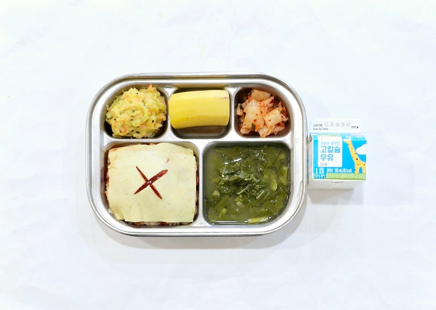 2024.12.18(수) 중식식단 - 오므라이스,아욱맑은국,으깬고구마범벅,배추김치 (후)바나나,우유