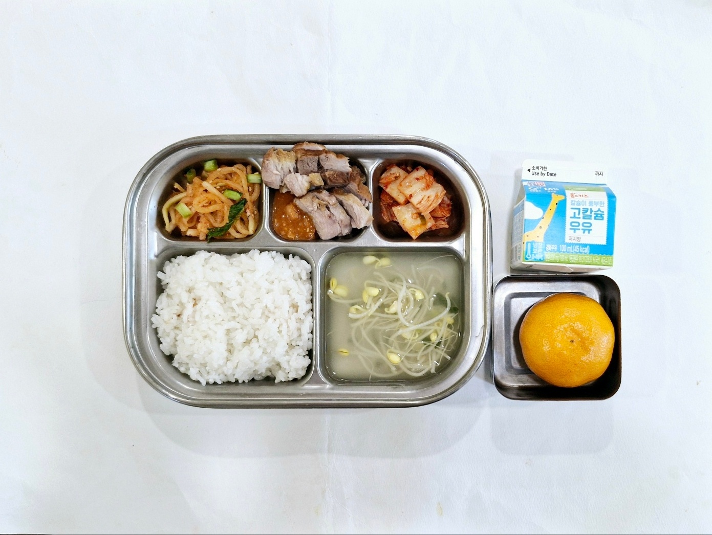2024.12.10(화) 중식식단 - 기장밥,맑은콩나물국,돼지고기수육&쌈장,무생채,배추김치 (후)귤, 우유