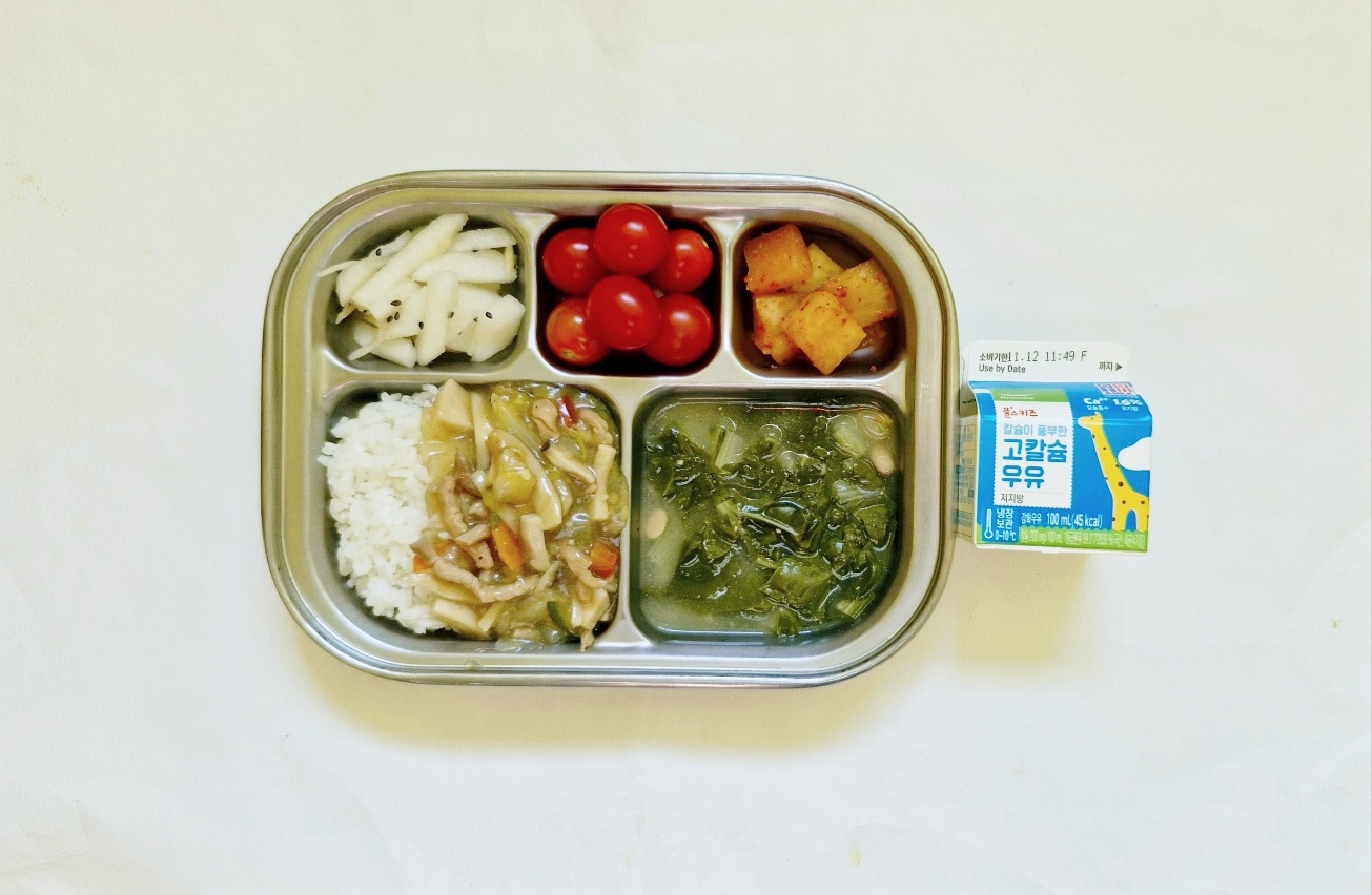 2024.11.5(화 ) 중식식단 - 돼지고기새송이덮밥,근대된장국,도라지배무침, 깍두기 (후)방울토마토, 우유