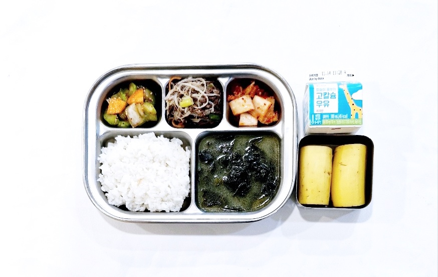 2024.11.6(수) 중식식단 - 백미밥,미역국,쇠고기숙주볶음,오이생채, 배추김치 (후)바나나, 우유