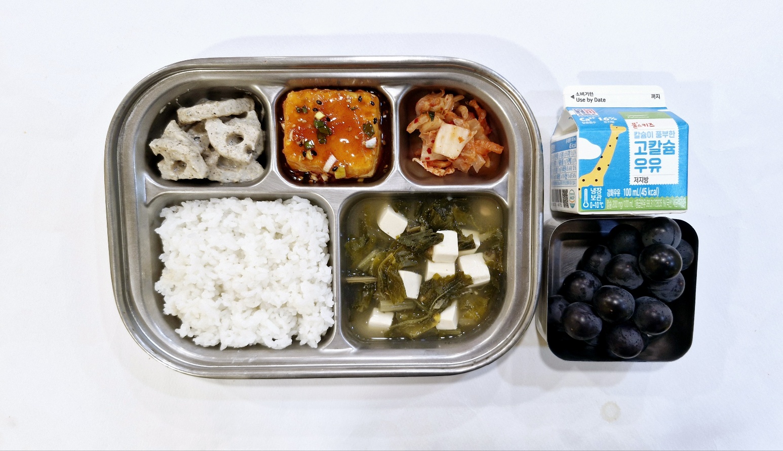2024.9.2(월) 중식식단 - 백미밥,시래기된장국,두부두루치기,연근깨소스무침,배추김치 (후)포도,우유)