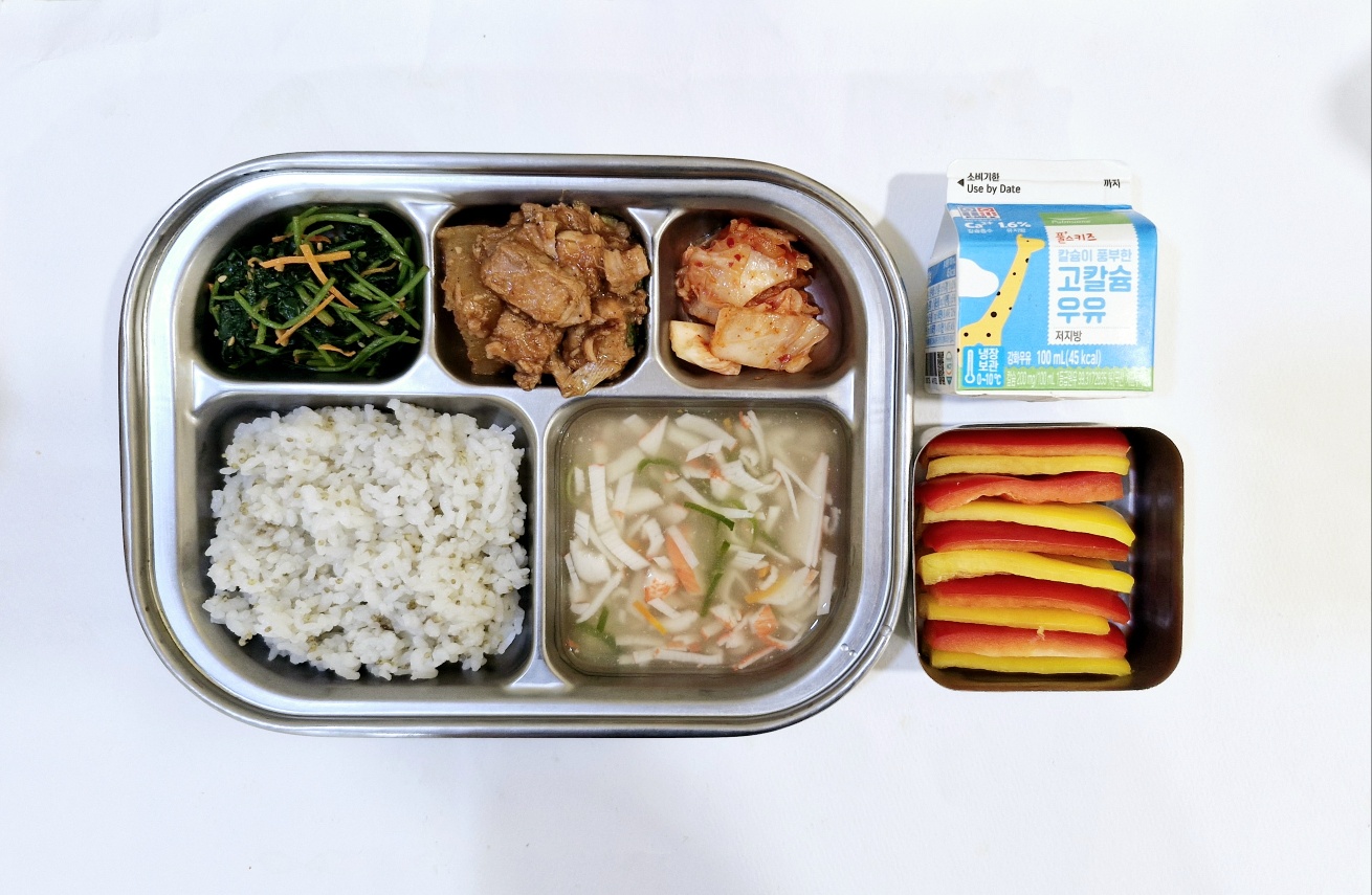 2024.9.3(화) 중식식단 - 차조밥,게살탕국,돼지고기케첩조림,참나물겉절이,배추김치 (후)파프리카스틱,우유)