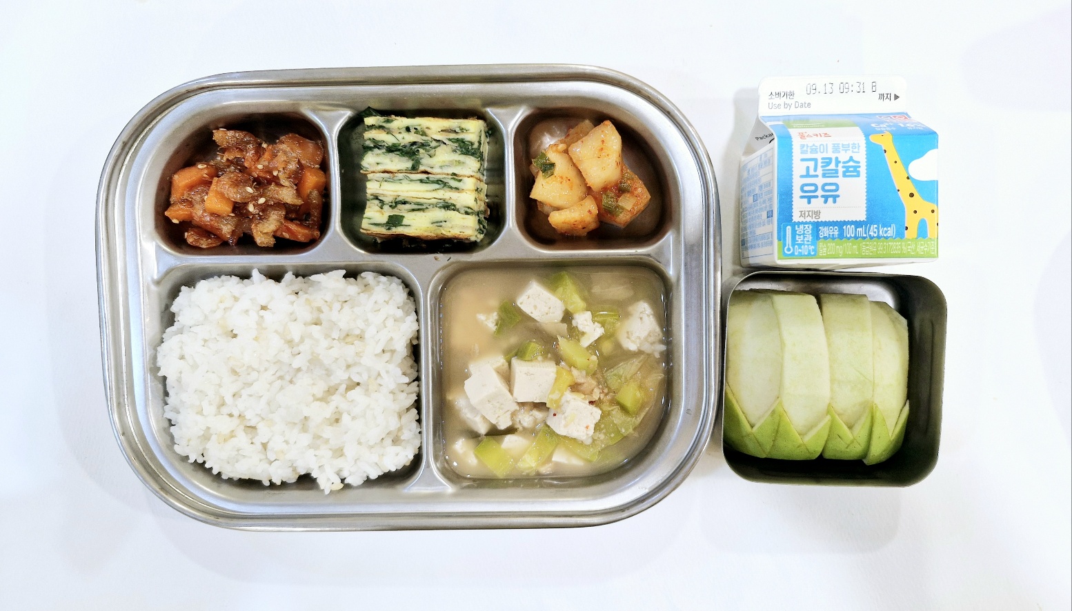 2024.9.6(금) 중식식단 - 현미밥,청국장찌개,깻잎달걀말이,건새우당근조림, (후)사과,우유)
