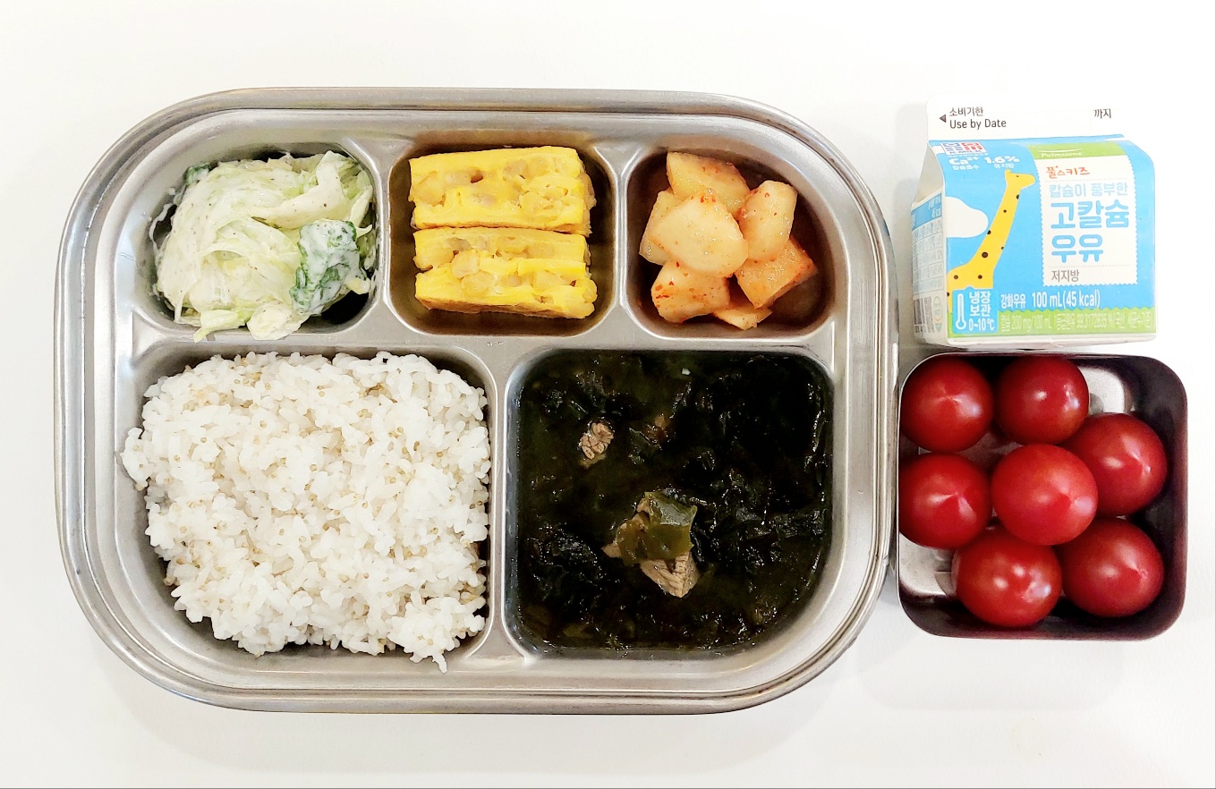 2024.6.10 (월) 중식식단 (차조밥,미역국,콘달걀말이, 양상추샐러드,깍두기(후)방울토마토, 우유)
