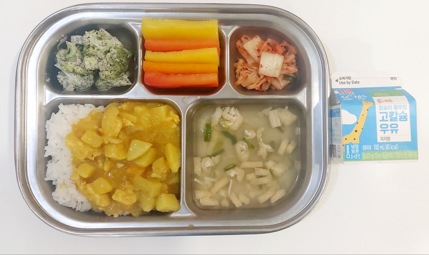 2024.6.11 (화) 중식식단 (돼지고기카레라이스, 미소장국, 브로콜리깨소스무침,배추김치(후)파프리카스틱, 우유)
