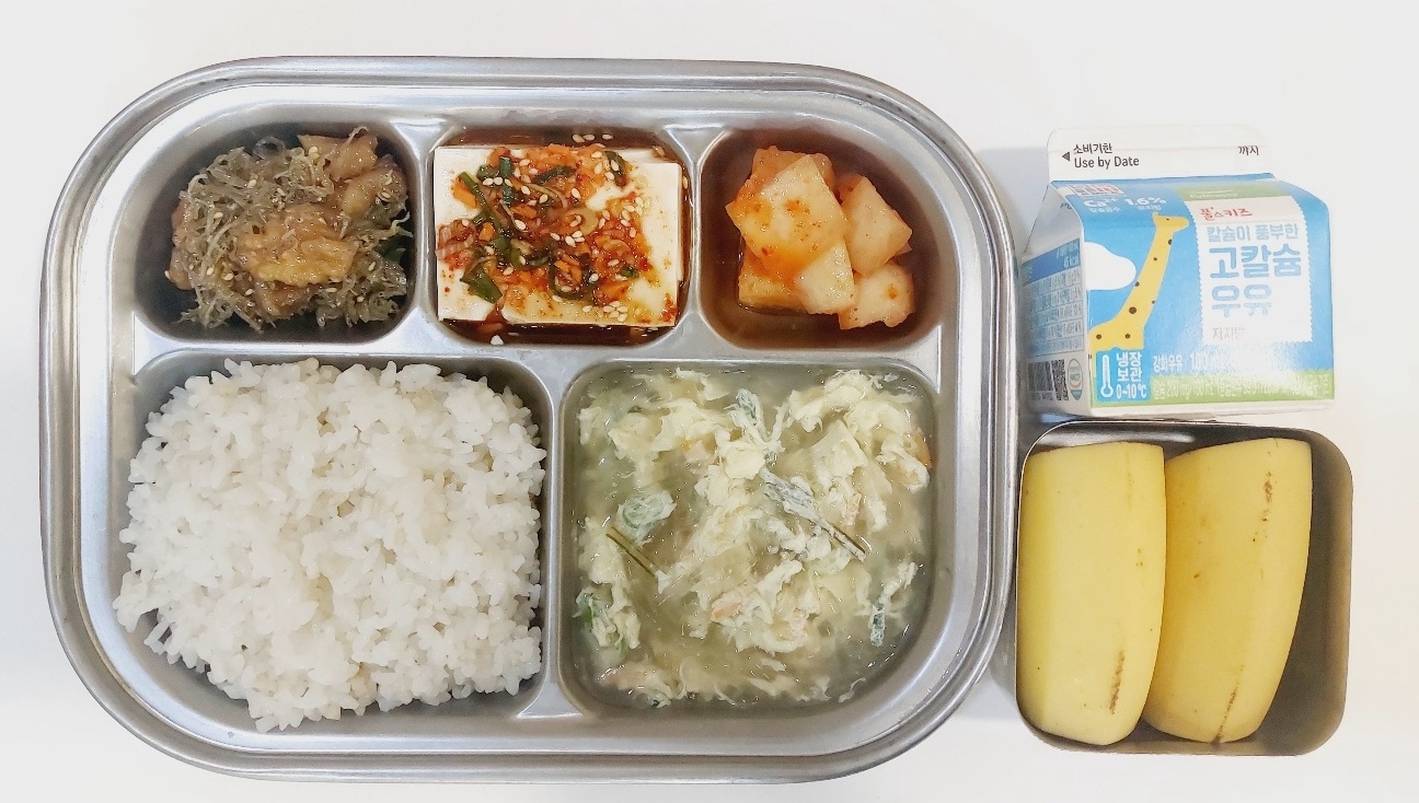 2024.6.12 (수) 중식식단 (현미밥,달걀당면국,연두부&양념장,잔멸치호두조림, 깍두기(후)바나나, 우유)