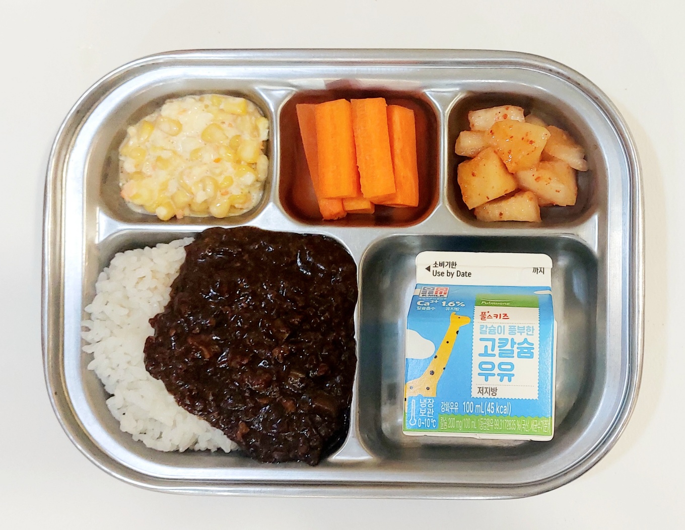 2024.5.29 (수) 중식식단 - 국없는데이 (닭살짜장밥,파프리카콘샐러드, 깍두기 (후),당근스틱, 우유)