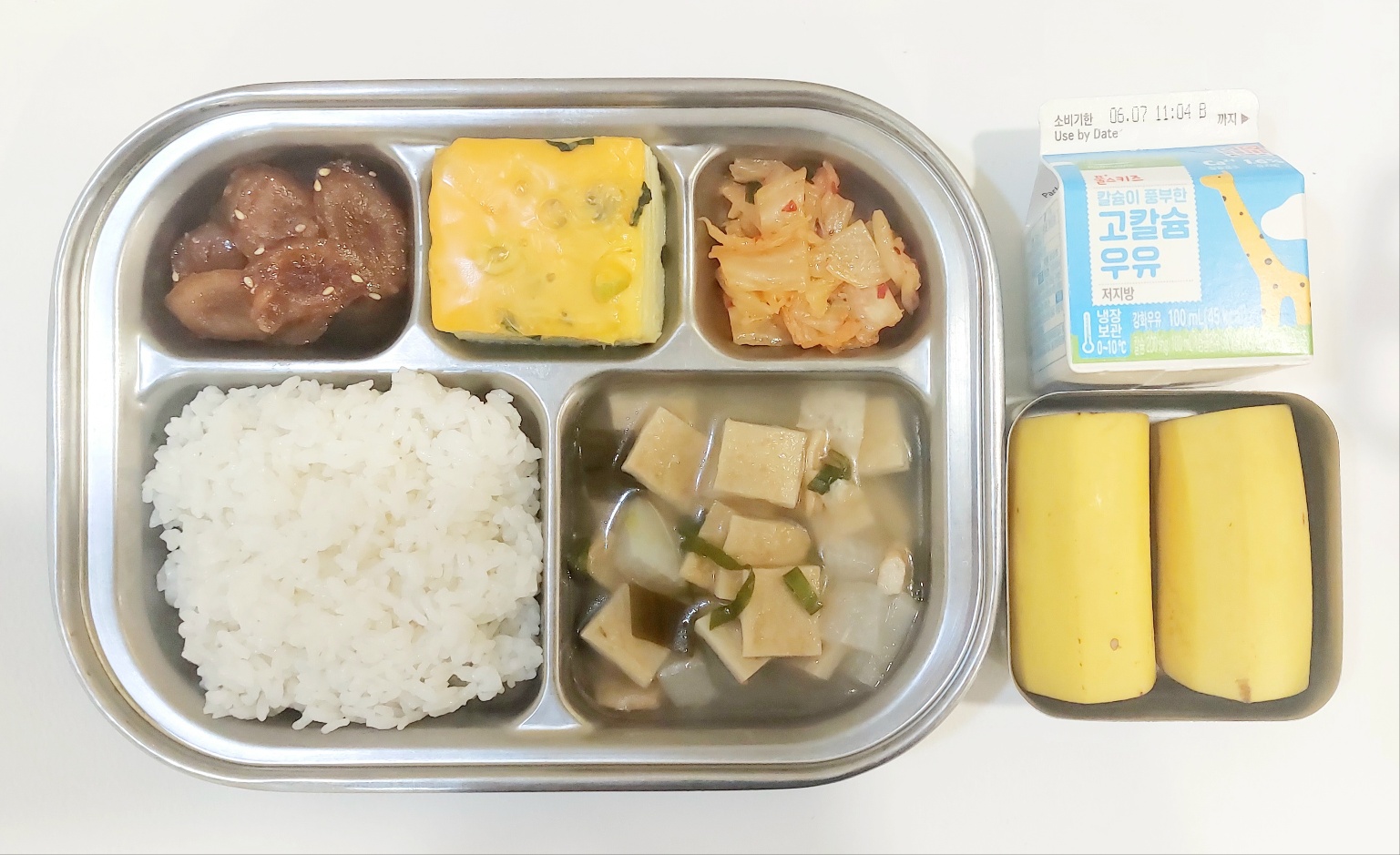 2024.5.30 (목) 중식식단 (백미밥, 어묵국,치즈달걀찜,우엉볶음,배추김치(후),바나나, 우유)