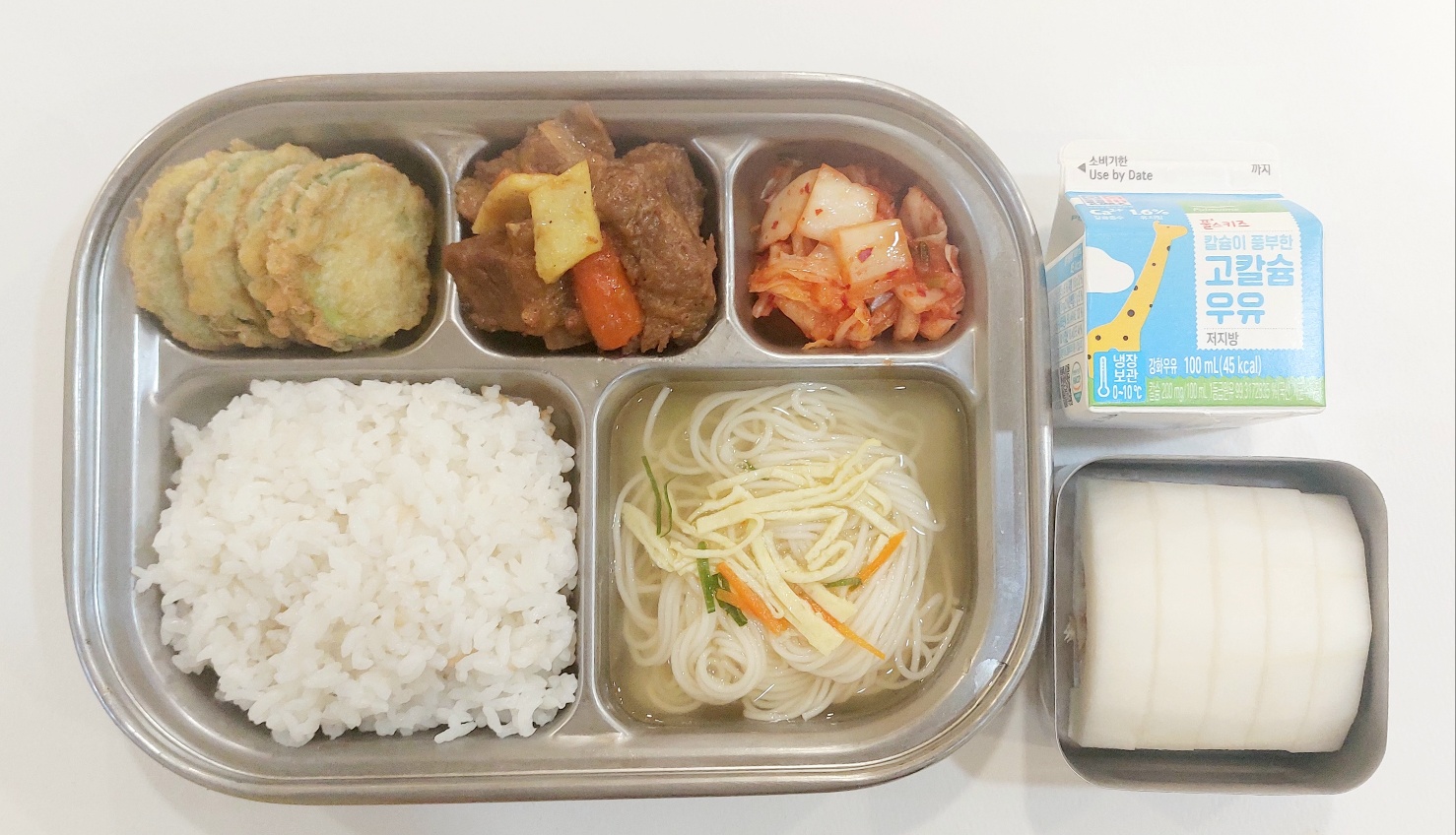 2024.6.4 (화) 중식식단 (백미밥,잔치국수,돼지고기갈비찜,호박전,배추김치(후)참외, 우유)