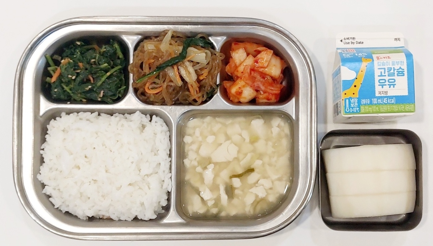 2024.5.10(금) 중식식단 - 백미밥, 연두부국,쇠고기잡채, 취나물 된장무침, 배추김치 (후)참외,우유)