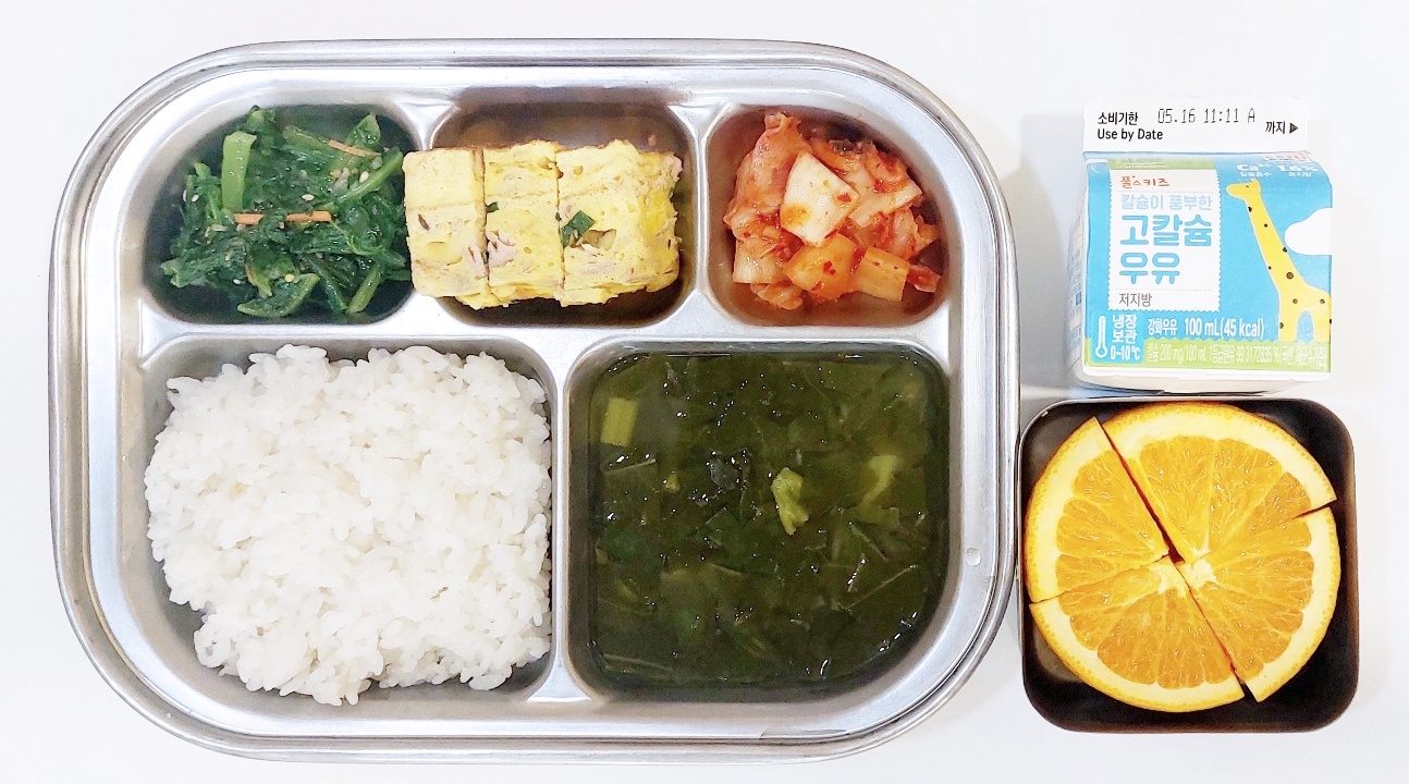 2024.5.13(월) 중식식단 - 백미밥,어묵국,참치달걀말이,열무무침, 배추김치 ((후)오렌지,우유)