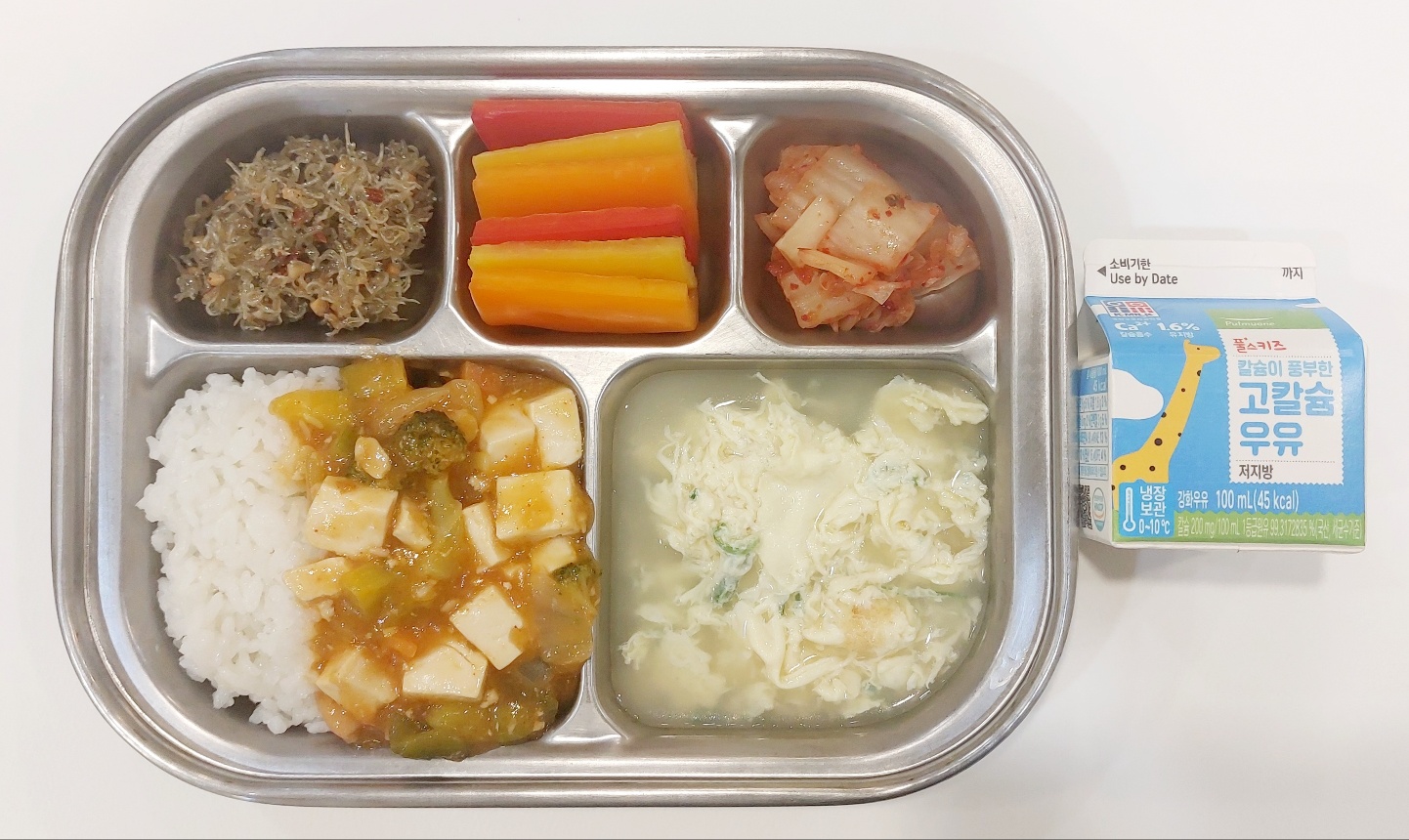 2024.5.16 (목) 중식식단 - 두부소보로비빔밥,달걀팟국,잔멸치아몬드볶음,배추김치 ((후)파프리카스틱,우유)