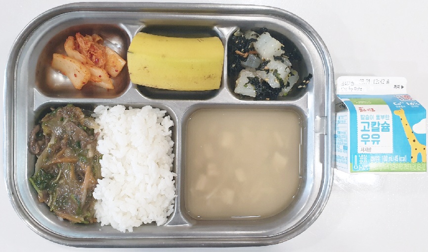 2024.3.13(수) 중식식단 (쇠고기봄나물덮밥, 팽이버섯된장국,청포묵김무침,배추김치 (후)바나나, 우유)