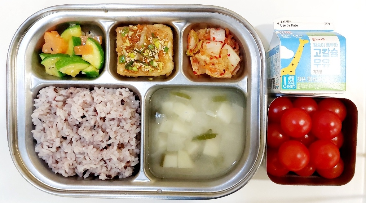 2024.3.14(목) 중식식단 (현미밥,김칫국,두부구이&양념장,감자채볶음,깍두기 (후)토마토, 우유)