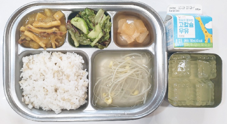 2024.3.12(화) 중식식단 (보리밥,콩나물국,오징어카레볶음,상추오이무침,깍두기 (후)샤인머스켓푸딩, 우유)