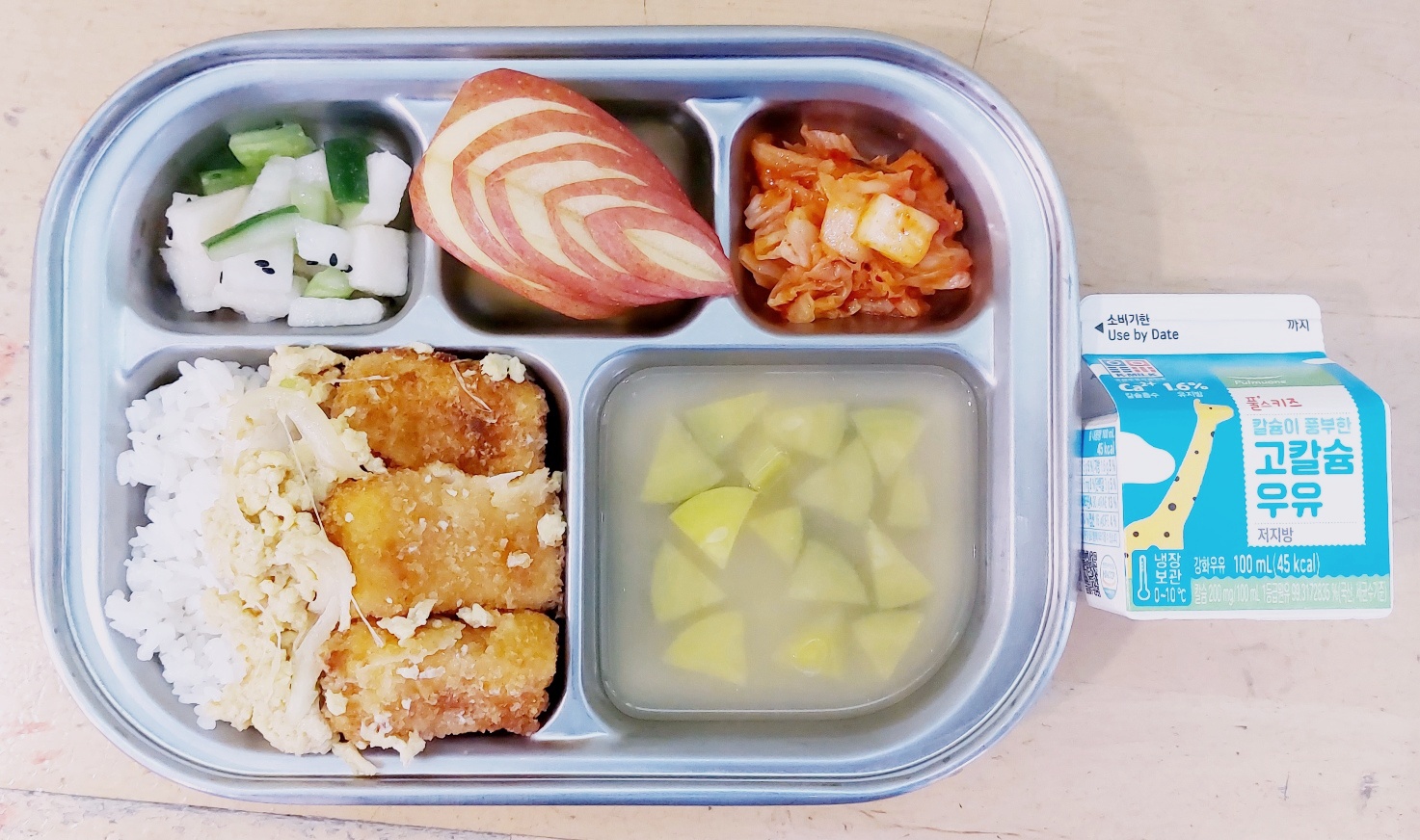 2024.2.27(화) 중식식단 (두부리덮밥,애호박맑은국,오이배무침, 배추김치 (후)사과, 우유)