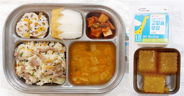 2024.2.7(수) 중식식단 (돼지고기부추볶음밥, 참치김치찌개,연근유자청무침,깍두기 (후)망고푸딩, 우유)