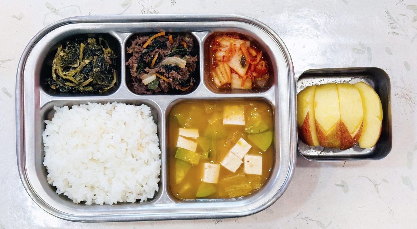 2024.1.16(화) 중식식단 (백미밥,청국장찌개,쇠고기깻잎찜,시래기나물,배추김치(후)사과)