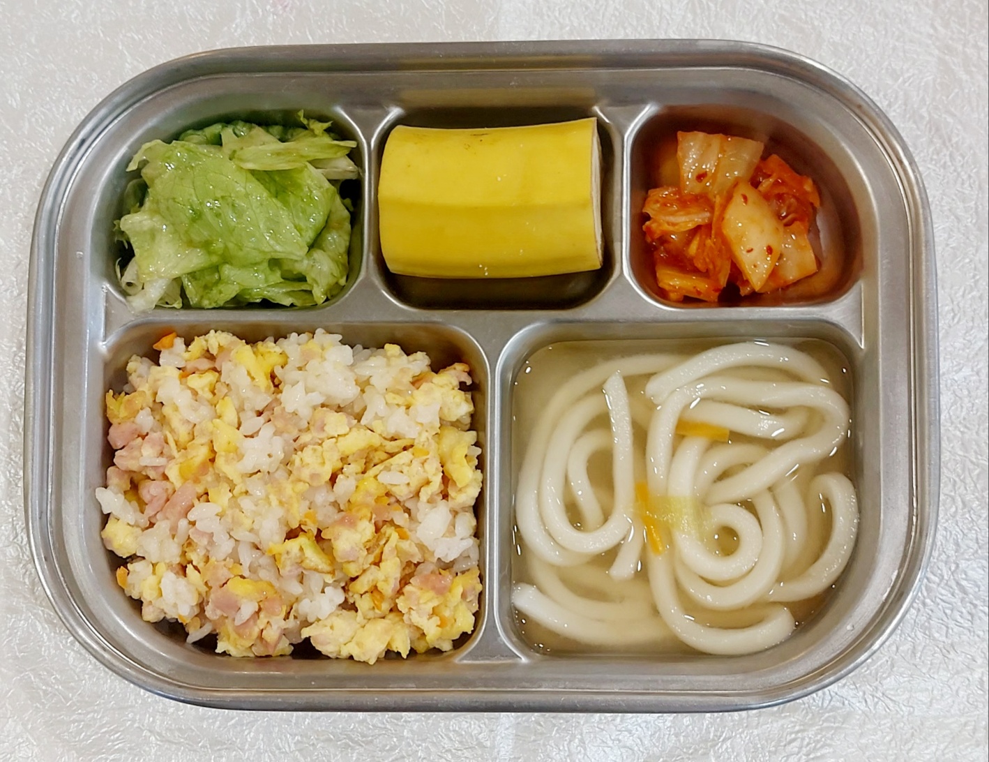 2024.1.19(금) 중식식단 (소시지달걀볶음밥, 미니우동, 양상추샐러드, 배추김치(후)바나나)