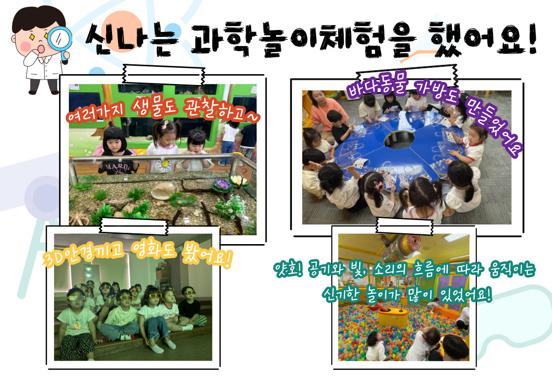 소식란 새삼선갤러리 행사달력 급식 운영위원회 입학안내 새삼선갤러리 신나는 여름캠프!! 새삼선 워터파크로 놀러오세요~! 관리자 | 25-07-23 스스로 내 몸을 지키는 방법! 생존수영을 배워요~ 관리자 | 25-07-16 책이랑 친구해요~! 국학도서관에서 다양한 책을 읽고 왔어요! 관리자 | 25-07-16 키즈마린파크에서 바다를 지켜요! 관리자 | 25-07-14 신기한 KBS 방송국! 방송국에서는 무슨 일을 할까요? 관리자 | 25-07-07 신기한 과학의 세계~ 놀이로 배워보는 과학의 원리! 신나는 과학놀이체험을 하고 왔어요! 관리자 | 25-07-07 6 7 8 9 10 11